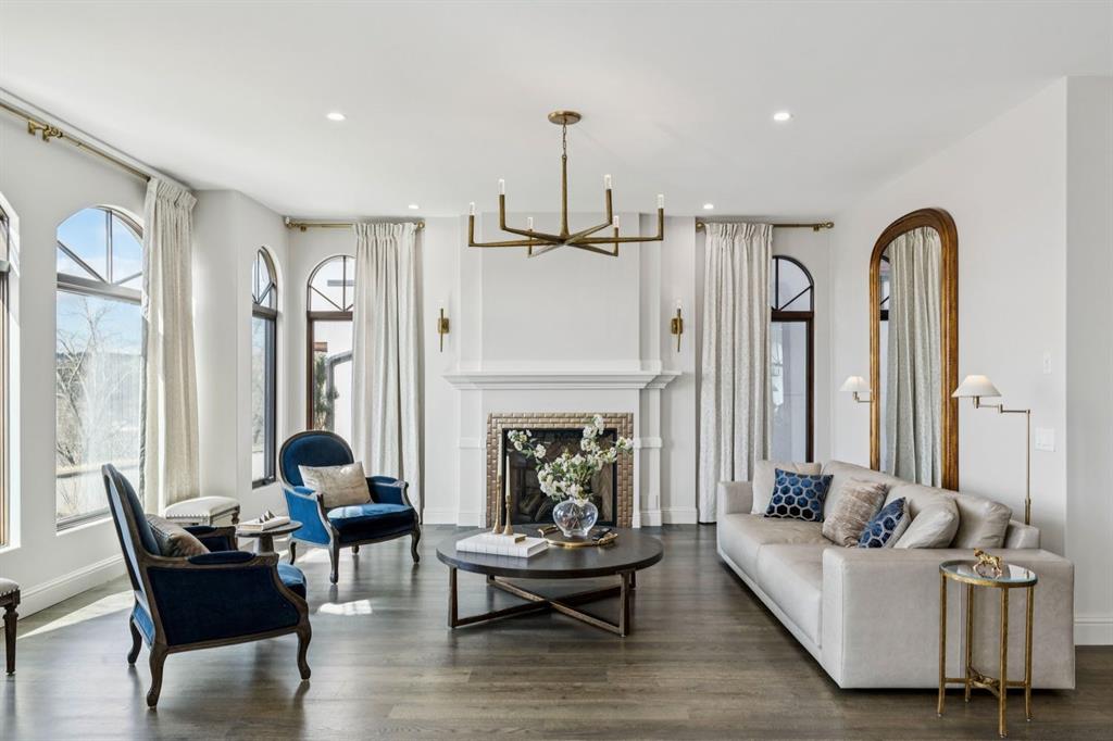Perched along the coveted ridge in the prestigious community of St. Andrews Heights, this exceptional estate home captures truly breathtaking panoramic views of the valley and downtown skyline, an ever changing backdrop that elevates daily living into something extraordinary. Wrapped in timeless stone tile, the home’s castle-inspired exterior makes a striking first impression, hinting at the grandeur that awaits within. Step inside to graceful arched windows and refined lighting that together create an atmosphere of understated luxury. The open concept layout is both elegant and inviting, anchored by white oak hardwood flooring throughout and thoughtfully designed spaces for modern family living. The living room is a statement in sophistication, featuring a gas fireplace that exudes warmth and style. The adjoining dining area flows seamlessly into a truly remarkable kitchen that’s designed to inspire. Crisp white cabinets with glass-front accents frames the space, while marble counters add a sense of refinement. A butlers pantry adds further convenience and a striking blue centre island offers generous seating and storage, complemented by charming beamed ceiling above. A full suite of high end Miele appliances, including an induction cooktop, built-in wall and steam ovens, microwave oven, panelled dishwasher, and separate panelled fridge and freezer ensures both beauty and performance. Sliding glass doors open to a slate patio and lush green space with curated planters for your own private oasis. A distinguished home office, accessed through french doors, features coffered ceilings and stunning wall paneling, with additional access to the rear patio. The main level is completed by a spacious mudroom with storage and offers access to the triple attached garage. A dramatic curved staircase leads to the upper level where a magnificent vaulted bonus room showcases a second gas fireplace, and a Juliet balcony, while a private upper deck embraces sweeping downtown, ridge and valley views. The primary suite is a true sanctuary presenting vaulted ceilings, a Juliet balcony, and exquisite custom dressing room. The lavish 5pc ensuite is designed for indulgence, complete with in-floor heating, dual sinks, vanity counter, a glass enclosed shower, and two separate water closets. Two additional generously sized bedrooms, a full bath, and a thoughtfully designed laundry room with built-in storage, concealed drying racks and sink complete the upper level. The fully developed lower continues the home’s refined aesthetic, offering expansive recreation and games areas filled with natural light from oversized windows. A glass enclosed home gym, fourth bedroom, and a 3pc bath provide flexibility for growing families or guests, while a large storage room with secondary laundry hookup ensures practicality. With its rare combination of timeless design, elevated finishes, and unparalleled views, this extraordinary home offers a lifestyle of sophistication, comfort, and enduring appeal.