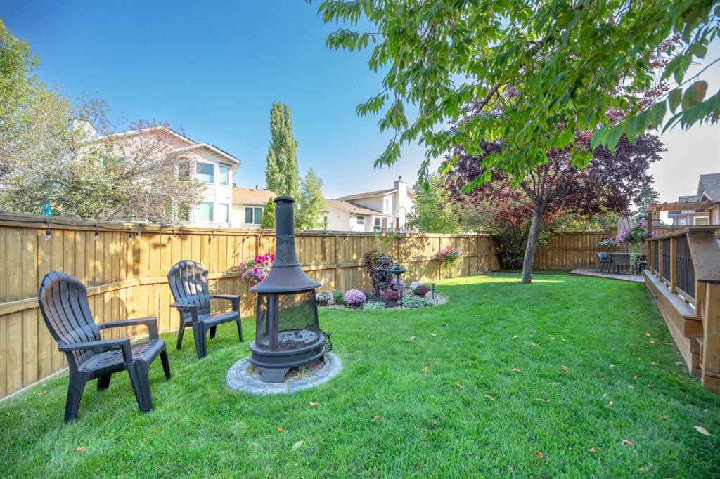 Welcome to this beautifully upgraded home with extra side yard, located just a short walk from the private lake, two schools, parks, river pathways and shopping. From the moment you step inside, you’ll be impressed by the grand vaulted entrance, showcasing inlaid tile flooring and a sense of timeless sophistication. The home has been extensively refreshed, the main floor features an updated half bath, a front flex room, a formal dining room, and a bright dinette that flows seamlessly into the living room, complete with a cozy gas fireplace for cooler nights. The completely renovated kitchen is a showstopper, boasting quartz countertops, new white slow-close cabinetry, custom backsplash, stainless steel appliances, undermount lighting, and thoughtful design throughout, perfect for both everyday living and entertaining. Upstairs, you’ll find four spacious bedrooms, a laundry room, and an open den area ideal for a home office or study nook. Both bathrooms have been fully renovated, including a four-piece main bath and a luxurious four-piece ensuite with high-end finishes. The fully finished basement expands your living space with two large rec rooms that include the 75″ TV, a fifth bedroom, and another three-piece bathroom—offering flexibility for guests, hobbies, or family movie nights. Outdoors, enjoy the massive deck and patio designed for entertaining with a retractable awning, hot tub ready, and complemented by multiple storage sheds. Additional updates include a newer roof, upgraded vinyl windows, PEX plumbing, updated hot water tanks, water softener, a new furnace with heat pump, and a heated double attached garage with a 220 outlet—ensuring year-round comfort and peace of mind. This meticulously maintained home truly has it all: show home quality, modern upgrades and an unbeatable location in a family-focused community with access to excellent schools, golf courses, and the beauty of nearby Fish Creek Park and the Bow River. Quick access to Deerfoot and Stoney Trail ensures easy connectivity across the city. Call today for your own private showing!