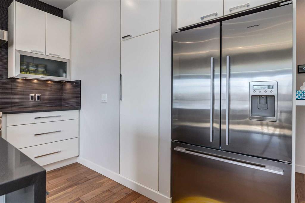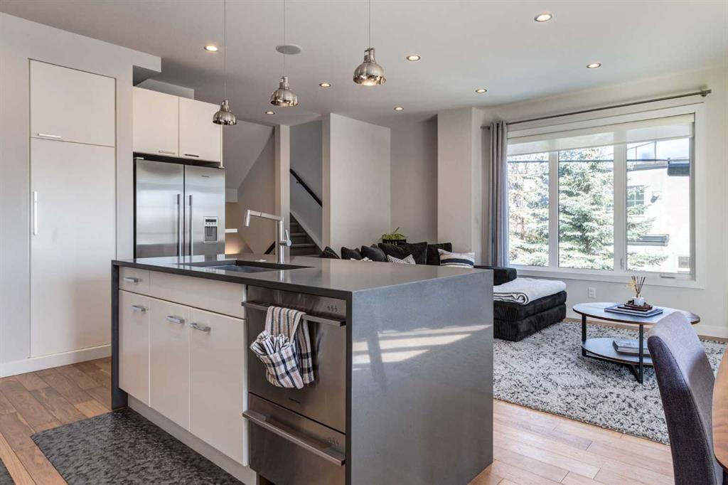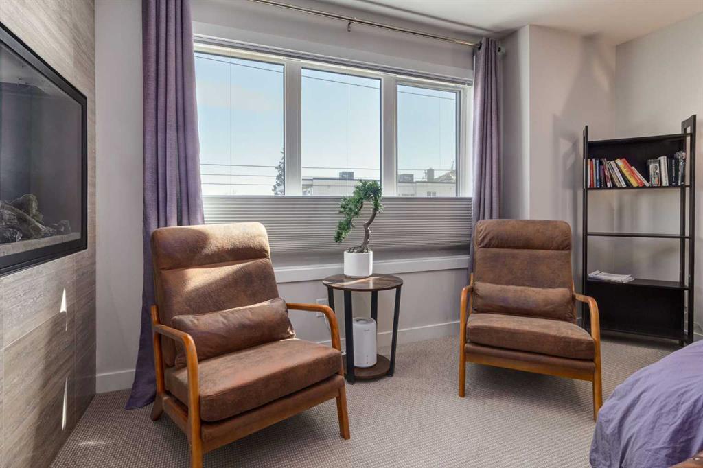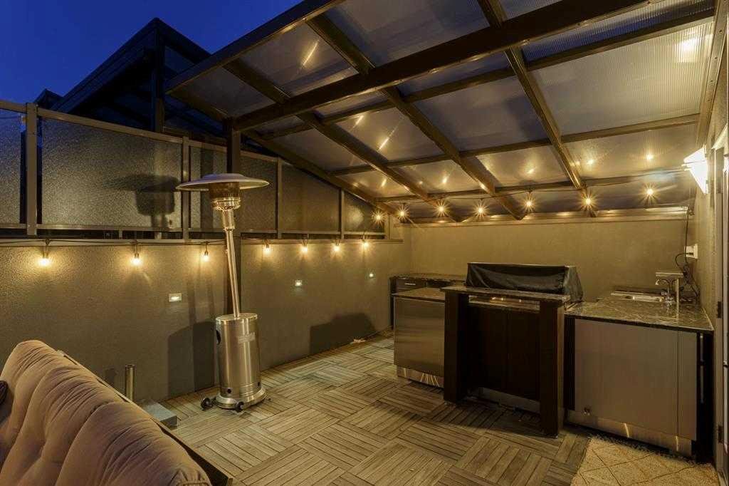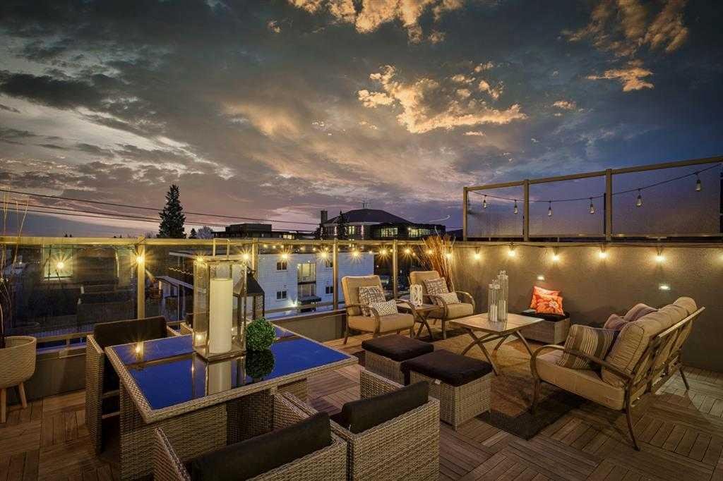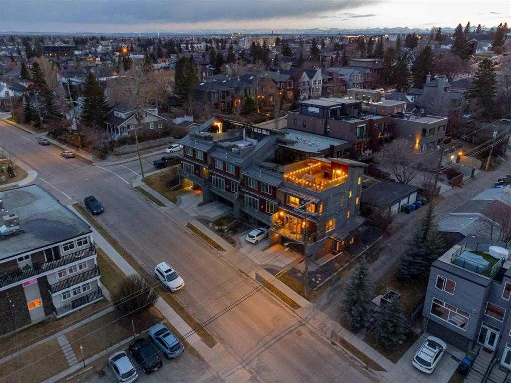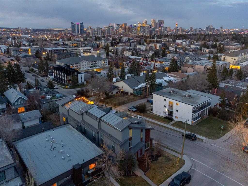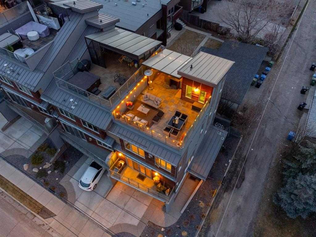 Welcome to an exceptional 3-bedroom townhouse nestled in the highly sought-after community of Marda Loop—where vibrant city living meets a true sense of community. Surrounded by boutique shopping, trendy cafés, and some of Calgary’s best dining, this is urban living at its finest. Step inside to a beautifully designed main floor featuring a bright, open-concept layout with rich hardwood flooring throughout. The modern kitchen is a true showpiece, complete with sleek stainless steel appliances, a gas range, and seamless flow into the dining and living areas—perfect for both everyday living and entertaining. A versatile main floor bedroom offers the ideal space for a home office or guest room, complemented by a stylish 2-piece bathroom. Upstairs, you’ll find two generously sized bedrooms with plush carpeting. The primary suite is a private retreat, offering stunning downtown views, a spacious walk-in closet, and a luxurious ensuite designed to impress—featuring a double vanity, a standalone soaker tub, a large glass shower, and a unique double-sided gas fireplace shared with the bedroom. A well-appointed 4-piece bathroom and convenient upper-floor laundry complete this level. The crown jewel of this home is the expansive third-level rooftop patio—a rare and highly desirable feature. Spanning approximately 30’ x 22’, this incredible outdoor space is built for entertaining and relaxation, showcasing breathtaking downtown views. Enjoy a fully equipped outdoor kitchen with a built-in BBQ, prep space, and covered area for year-round use. With ample room for lounging and dining—and even potential for a hot tub—this is your private urban oasis. Rounding out the home is an oversized 22’ x 22’ double heated garage with additional storage, along with key upgrades including a brand-new furnace and central air conditioning for year-round comfort. This is a rare opportunity to own a modern, feature-rich home in one of Calgary’s most desirable inner-city communities.