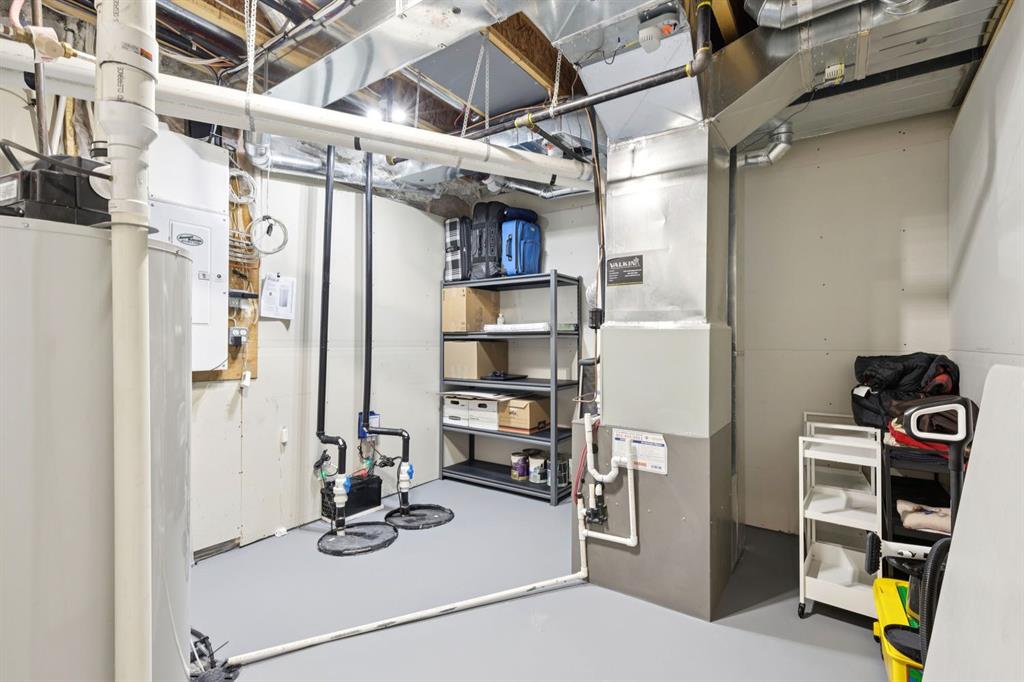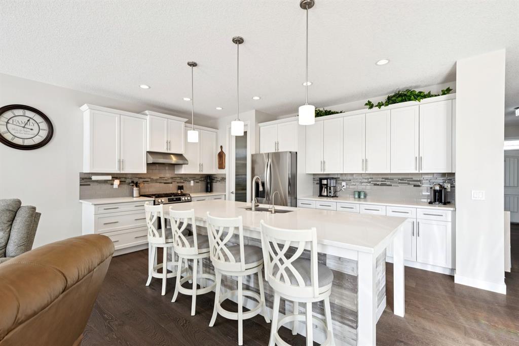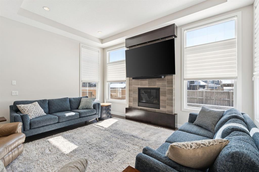 Welcome to this gem in Boulder Creek Estates! This beautifully maintained 5-bedroom home is ideally located on a quiet street just moments from the golf course. The main floor features 10 ft ceilings, a dedicated office, 2-piece bathroom, laundry room, and a spacious mudroom with built-in lockers. The modern kitchen is equipped with stainless steel appliances, granite countertops, a massive island, and a convenient walk-through pantry, all overlooking a cozy living room with a gas fireplace. Upstairs offers a comfortable family room, three bedrooms, a 4-piece bathroom, and a luxurious primary retreat complete with a 5-piece ensuite and walk-in closet. The fully developed basement includes two additional bedrooms, a 4-piece bath, a large recreation room, and ample storage. Enjoy the sunny south-facing backyard, professionally landscaped with a dog run and storage shed. The IMPRESSIVE 4-CAR GARAGE is insulated, heated, and features 220V wiring with its own panel. Additional highlights include 9 ft interior doors throughout, water softener, reverse osmosis system, central vacuum, and high-efficiency furnace and hot water system. Recent upgrades (2024) include a GAS stove, AIR CONDITIONING, new fridge, new washing machine, smart thermostats, and new carpet. This home shows exceptionally well and has been meticulously maintained. A must-see!!