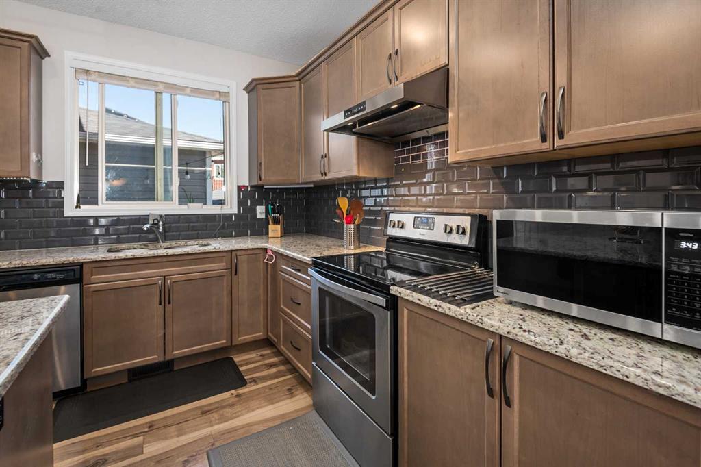 And it flows into a large dining room that can accommodate a large full size dining table. The kitchen, overlooking the large side yard, has an oversized granite countertop with tons of storage and maple cabinets. All stainless-steel appliances like Fridge, dishwasher, glass top stove, oven and a recently installed powerful hood fan are all included.