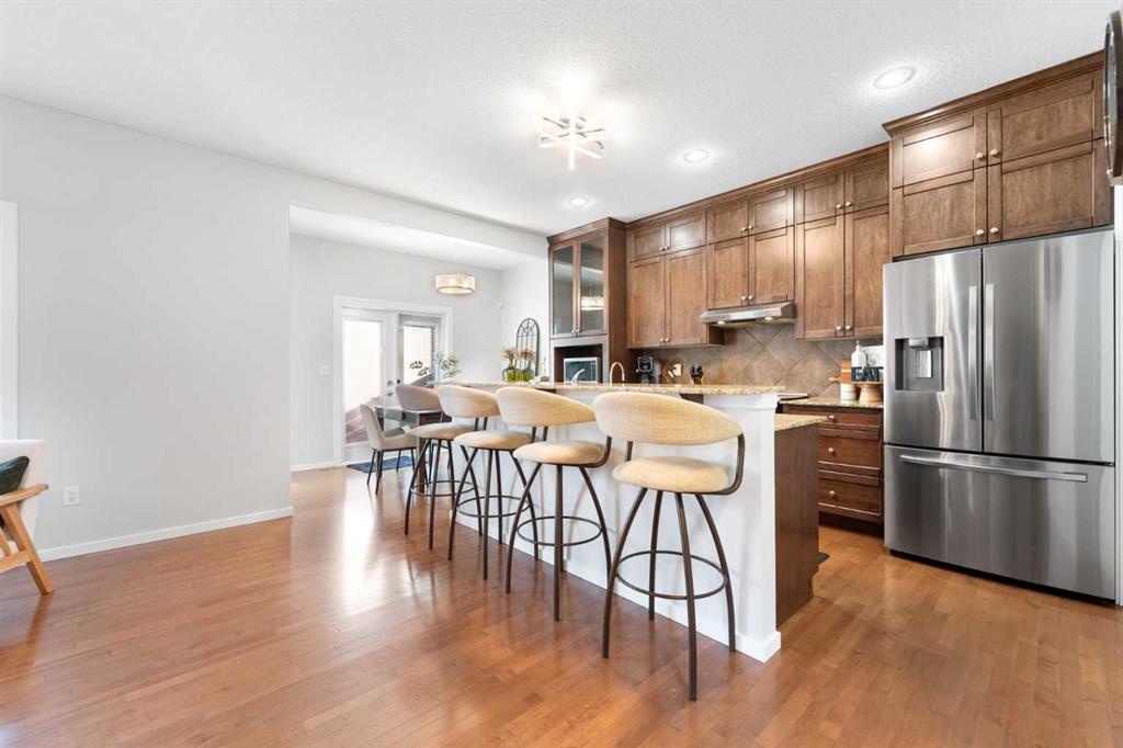 This original-owner, meticulously maintained home is a rare gem, located in a phenomenal, vibrant family-friendly community surrounded by excellent schools. Just less than one block from Chinook Winds Regional Park, this home offers the perfect combination of comfort, style, and convenience. The open-plan main floor is flooded with natural light from the back of the home’s wall of windows, highlighting hardwood throughout, an upgraded kitchen with full-height cabinetry, granite countertops, and stainless steel appliances, plus a cozy gas fireplace and Nestor thermostat for year-round comfort. Upstairs features 3 spacious bedrooms plus a bonus room, including a master suite with walk-in closet and a luxurious 5-piece ensuite. The backyard is beautifully landscaped, complete with planter boxes with irrigation and privacy screens, a non-slip Dura-Deck, lower patio, and shed for extra storage — ideal for outdoor gatherings and gardening. The home also boasts a dream heated garage, perfect for vehicles, projects, or extra storage. Additional updates include roof (2013), AC (8 years old), on-demand hot water (5 years ago), and furnace (5 years ago), all serviced annually. Families will appreciate the nearby Chinook Winds Regional Park, offering 55 acres of parkland, 2 km of paved pathways, 3 playgrounds, 8 baseball diamonds, 4 beach volleyball courts, a large skate park, a seasonal splash park, and even a toboggan hill in winter. Prairie Springs is a vibrant, family-friendly community, with great schools nearby and easy walking distance to Tequila and Tacos for family nights. This home is truly move-in ready and perfect for families. The house you want to call home.