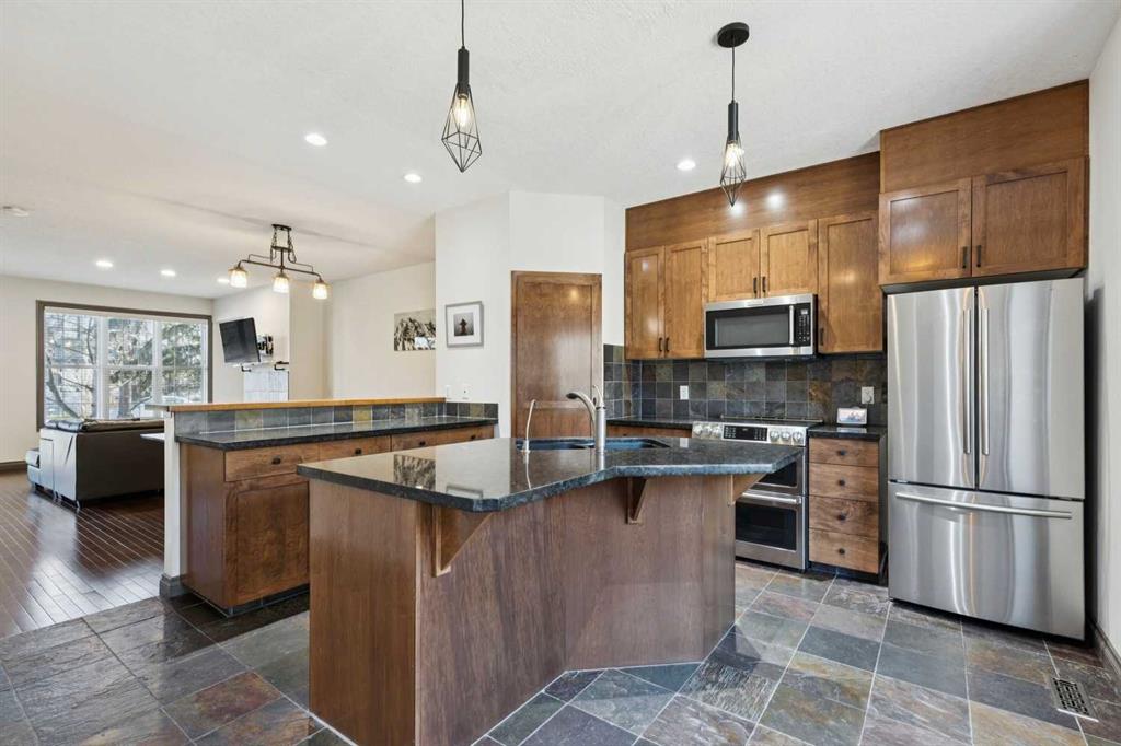 With almost 2,000 square feet of living space, 3 bedrooms, 3.5 bathrooms, a fully-finished basement and a double detached garage, this inner city townhome presents a great opportunity! Nine foot ceilings flow throughout the open-plan main level which features a spacious kitchen with granite counters including a raised breakfast bar with room for stools, a corner pantry, and newer stainless steel appliances including a premium double oven range. The adjoining dining area easily fits a large table and is perfect for entertaining, and the living room is a great place to unwind in front of the cozy gas fireplace. Upstairs is host to two bedrooms including a generous primary bedroom boasting a private balcony, five piece ensuite bathroom with soaker tub, separate shower & dual sinks, and a walk in closet. The second bedroom is conveniently located next to the main bathroom. Completing this level is a convenient upper laundry with a newer LG Washtower. The finished lower level adds excellent flexibility with a third bedroom, full bathroom, a spacious living room, and plenty of storage. Completing the package is a double garage along with ample street parking for guests, and a west-facing patio which you’ll appreciate this summer! The home also includes a number of smart home features such as cameras, Nest thermostats & temperature sensors, and smoke detectors which are all included. Fantastic location just steps from Mount Royal University and with quick access to transit, major roadways, shops, restaurants and more. Call your favorite Realtor to schedule a private viewing!