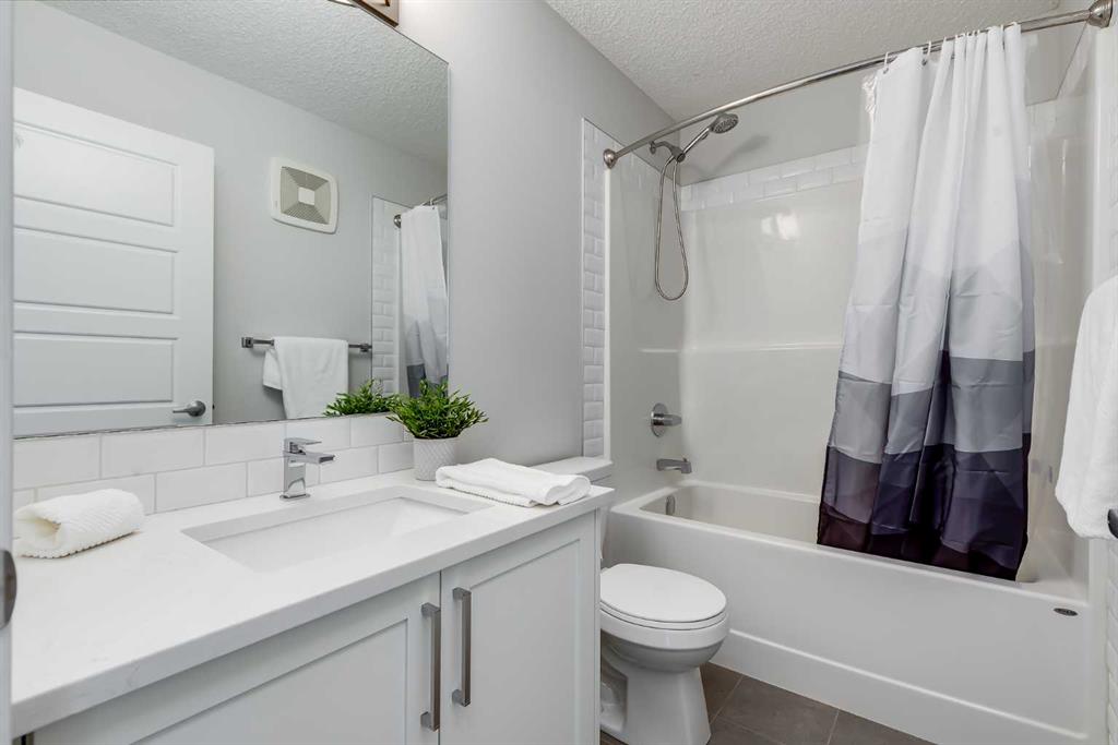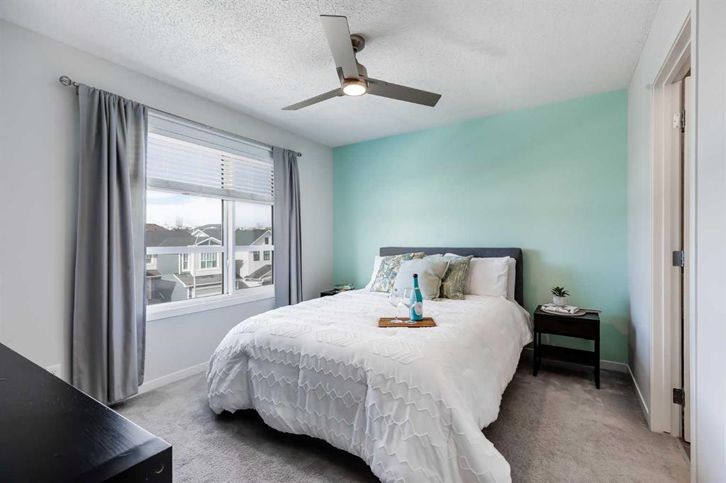Located in the desirable community of Harvest Hills, this three-storey end-unit townhouse offers approximately 1,700 square feet of developed living space, a double attached garage, and a functional layout designed for comfortable living. As an end unit, the home benefits from additional windows that bring in natural sunlight and enhance privacy within the complex. The main level welcomes you with a spacious street-level entryway finished with tile flooring and direct access to the double attached garage, which offers ample storage space. A versatile flex room completes this level and can function as a home office, family room, workout area, or hobby space. Upstairs, the second floor serves as the primary living area, where large windows fill the living room with natural light, creating a comfortable space to relax or gather with friends and family, while 10-foot ceilings add to the sense of openness.The kitchen features white cabinetry, quartz countertops, stainless steel appliances, and a two-tone island with seating. Soft-close drawers, generous cupboard space, and a pantry provide practical storage. Adjacent to the kitchen, the dining area offers room for everyday meals or entertaining, and a two-piece powder room is also located on this level. Just off the living room, a covered balcony with a BBQ gas hookup provides a convenient outdoor space. The primary bedroom includes a walk-in closet and an ensuite with dual sinks and an oversized tiled shower. Two additional bedrooms, a four-piece bathroom, and a dedicated laundry area complete this floor. Recent updates include a new roof in 2025 and a new dishwasher installed the same year. Pets are permitted with board approval, and residents enjoy shared outdoor features including a community garden and an apple orchard. The surrounding neighbourhood offers an excellent balance of recreation and convenience. The home is just steps from Harmony Park and the nearby pond, where walking and biking pathways wind through the community. Harvest Park, with playgrounds and tennis courts, is only minutes away, while the natural landscapes of Nose Hill Park are roughly a five-minute drive from the property. Families will appreciate the proximity to Ascension of Our Lord School along with several additional schools in the surrounding area. Everyday errands are convenient with the shops, services, and dining options of Country Hills Village located just minutes away. Nearby retailers such as T&T Supermarket and Costco provide easy access to groceries and household essentials. Recreation opportunities are available at Vivo, while major routes including Country Hills Boulevard and Deerfoot Trail make commuting across the city straightforward. Calgary International Airport is only minutes away, and regional shopping at CrossIron Mills can be reached in about ten minutes. Public transit is easily accessible, and connected cycling pathways link the community to surrounding amenities and routes across Calgary.