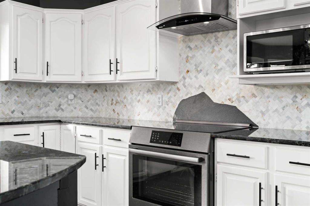 **MOTIVATED SELLER IMMEDIATE POSSESSION** Welcome to this beautifully upgraded 4-bedroom, 4-bathroom home in the highly sought-after community of Lakeside Greens in Chestermere. This thoughtfully renovated property offers comfort, function, and style with a long list of recent updates. The heart of the home is the stunning renovated kitchen (2022) featuring professionally painted cabinets, a large island with granite countertops, marble backsplash, updated hardware, and an induction stove. The main floor boasts gorgeous herringbone-patterned tile flooring with a hardwood look, a refreshed fireplace surround, new baseboards, and a custom closet in the powder room (2024). Enjoy year-round comfort with a new furnace, A/C, and thermostat installed in 2024, as well as a new hot water heater (2023). The finished basement features a fully renovated bathroom (2025), new carpet, updated flooring in the bar area, and upgraded laundry (2020). Step outside to an entertainer’s dream backyard, complete with an extended composite deck, waterproof storage underneath, a hot tub, barnboard privacy wall (2023), and beautifully landscaped gardens (2021). The exterior upgrades continue with updated front landscaping and concrete (2025) and new roof in 2013. Backing onto a walking path and playground and just a short walk to parks, schools, the beach, rec centre, and shopping, this home truly has it all!