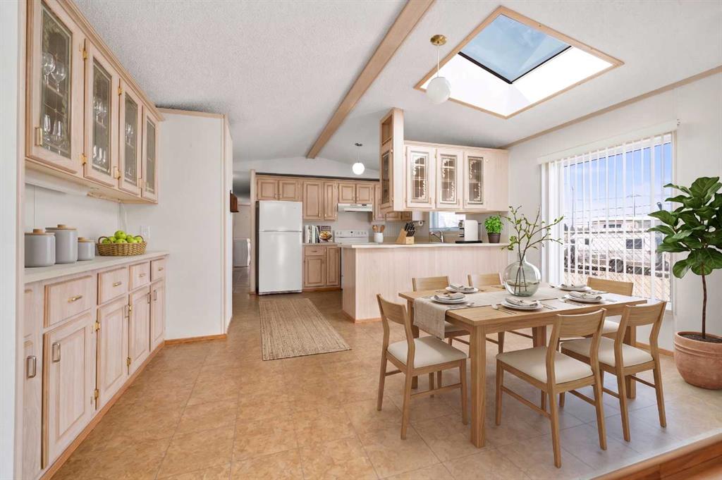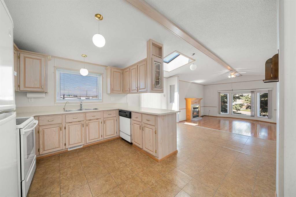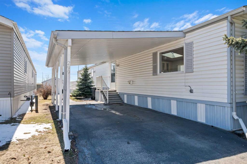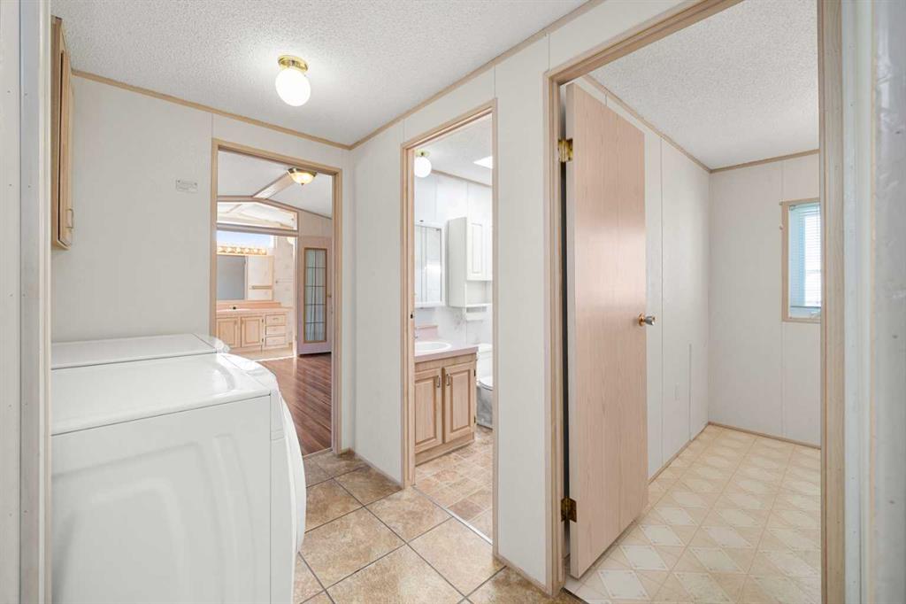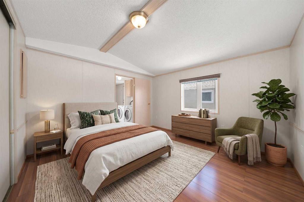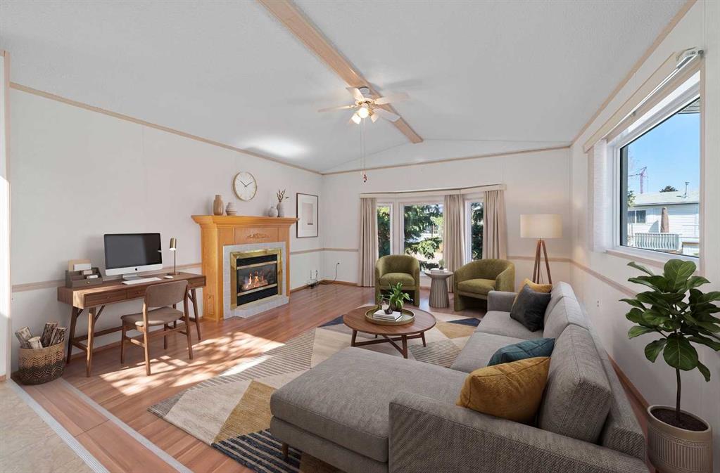 Affordable living in Watergrove Park! Welcome to this fantastic opportunity to own in one of NW Calgary’s most sought-after 45+ communities. This well-maintained 3 bedroom, 2 full bath mobile home shows pride of ownership throughout and is in amazing condition, with quick possession available. The bright open-concept layout offers spacious living and dining areas, perfect for both everyday living and entertaining. The sunken living room with a cozy gas fireplace creates the perfect place to unwind, while air conditioning keeps the home comfortable year-round. The kitchen offers ample cabinetry, generous counter space, and a separate built-in area ideal for extra storage or a coffee bar. The home features three well-sized bedrooms including a large primary retreat with a 5-piece ensuite and relaxing jetted tub. Step outside to your wrap-around deck with no neighbours behind, a great spot to enjoy the quiet setting and beautiful sunsets. Additional features include covered parking and a large storage shed (power & lights). Watergrove Park is a well-managed community with paved roads, a central landscaped green space, and a clubhouse featuring a pool, hot tub, sauna, fitness area, and social spaces, with lot fees including water, sewer, and weekly garbage, recycling, and compost collection. Located in the desirable community of Arbour Lake, just minutes to Crowfoot Crossing, major roadways, public transit, and all amenities. Don’t miss this affordable opportunity to get into the Calgary market, book your private showing today!