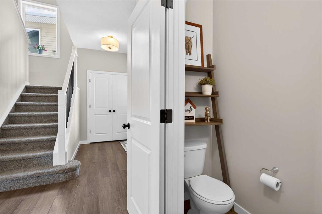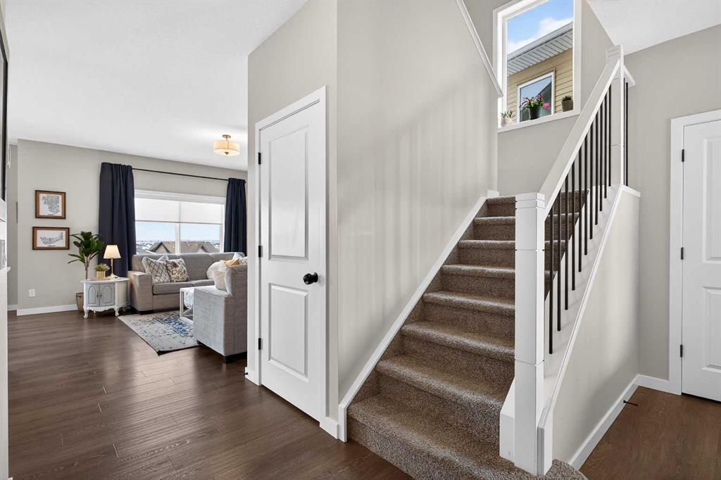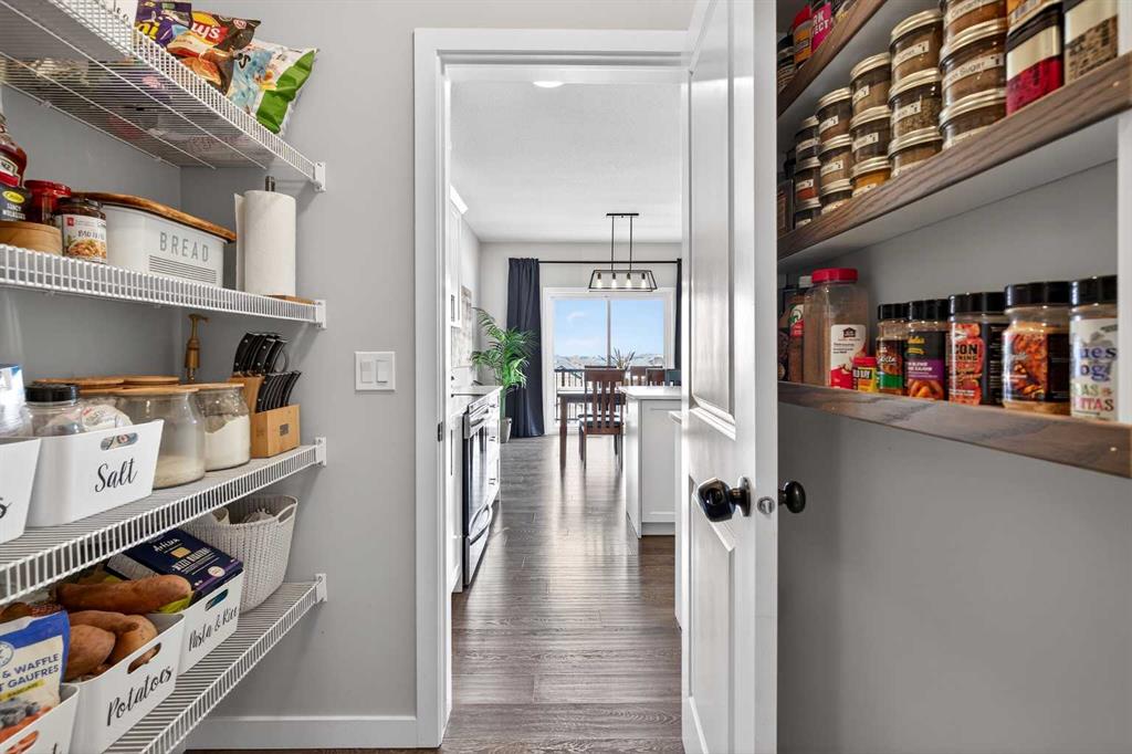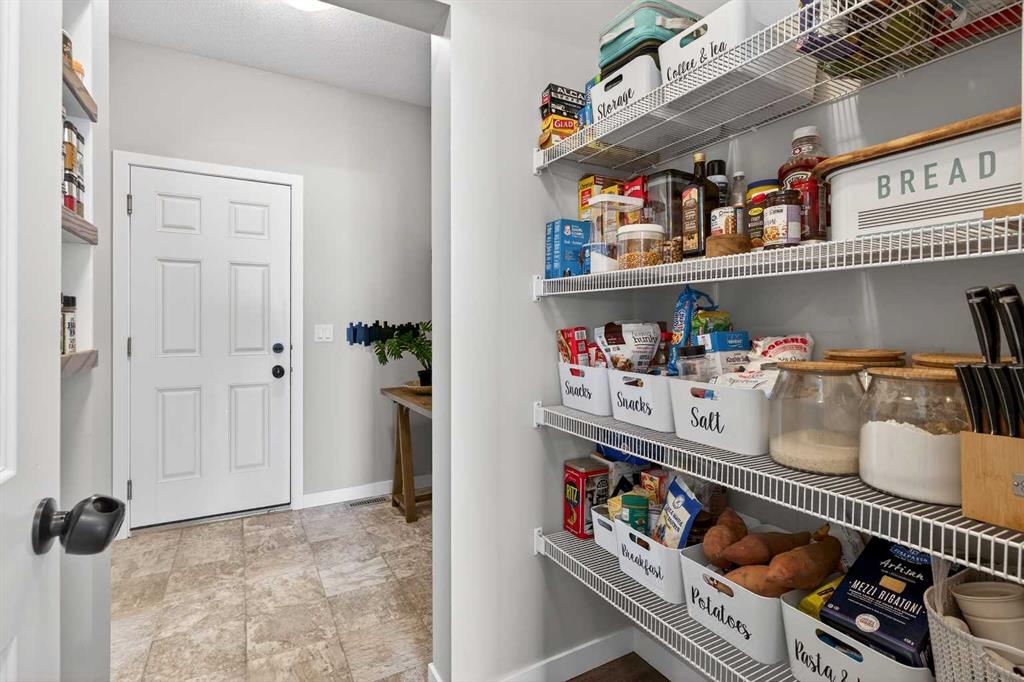 The kitchen is ready for real life with quartz countertops, tons of prep space, pot & pan drawers, and a large pantry. But here’s a fun surprise: this main floor has a secret weapon—a huge walk-in closet tucked between the mudroom and foyer. It’s the perfect catch-all for jackets, hockey gear, Costco runs, or extra pantry storage.