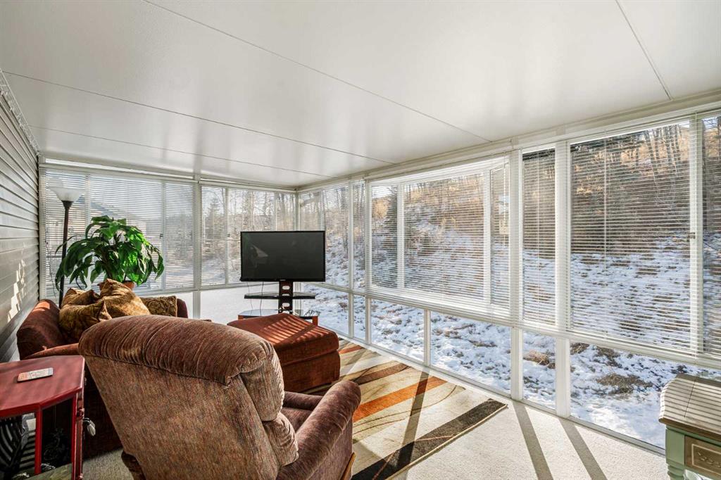 QUIET LOCATION, OVERSIZED DOUBLE ATTACHED GARAGE, COVERED SCREENED DECK! Welcome to exceptional living in Crawford Ranch, one of Cochrane’s quietest and most scenic communities. Downsize in style in one of the town’s most exclusive condo offerings. This rare home gives you everything you love about a single-family property including an oversized heated double car garage (29X25) and an impressive (10×15) three-season sunroom overlooking mature trees and wild life.