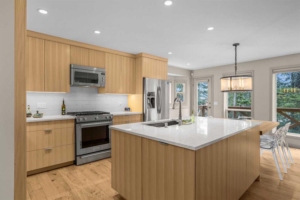 The home backs onto mature trees creating exceptional privacy and quiet, while the massive south-facing deck captures glorious mountain views, the perfect place for morning coffee or evening après.