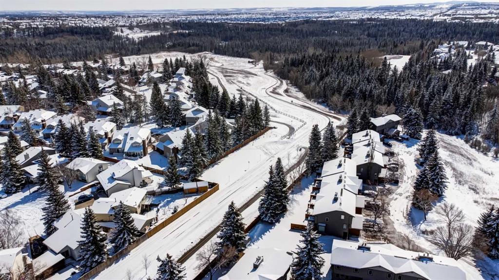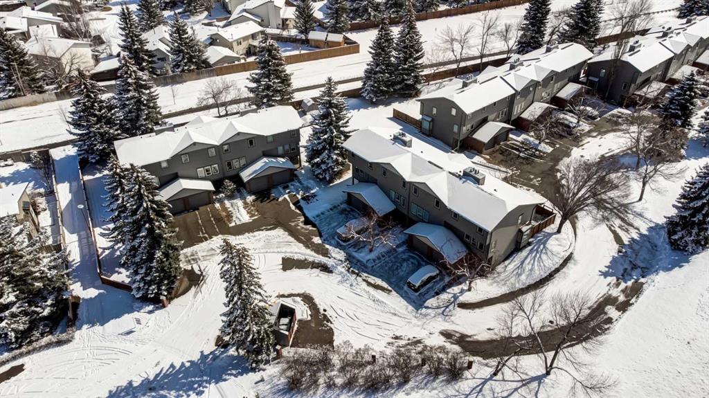 Welcome to this spacious, updated townhome located on Fish Creek Park. Woodacres is a desirable condo complex with 23 residences in exclusive Woodacres in Woodbine. Plenty of natural light floods the beautifully renovated white kitchen with stainless steel appliances. The dining nook is located in this large space where patio doors invite you onto the newer cedar patio with portable bbq. Views from the living room with cozy fireplace make relaxing a dream. The second bedroom with den/flex area is housed on the next level with updated 4-piece bathroom (original 2 bedrooms were converted to 1). Quietly situated on the top floor is the oversized Primary Bedroom with 3-piece ensuite, large closet and two windows. Located in the lower level you will find a family room, 2-piece bathroom, utility room and storage. The single garage has direct access into the foyer. Storage unit and extra fridge included. Additionally, there is space for a second vehicle in the front driveway. Upgrades to this property include; kitchen, laminate flooring, windows, main bathroom and cedar deck. Hardy board siding, along with garage doors and outdoor lighting were also completed in the past few years. Bebo Gardens in Fish Creek Park is steps away. Easy access to shopping, schools and transportation. Quick possession available.