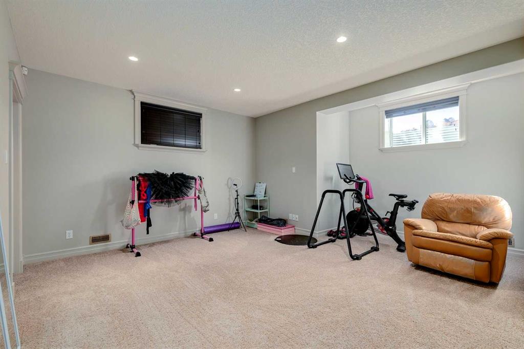 The lower level provides a large recreation area—perfect as a flex space, media room, or second family area—along with a 2-piece bath and plenty of storage.