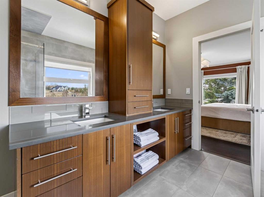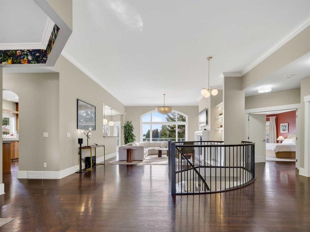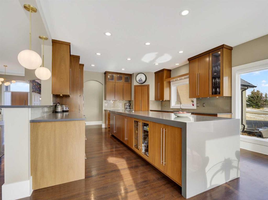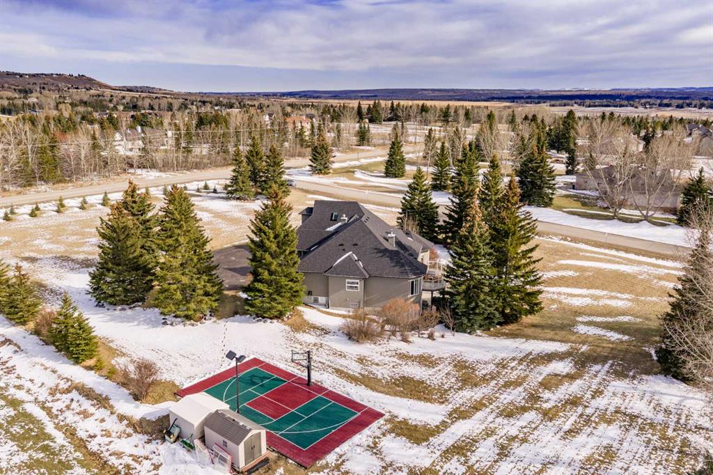 Introducing 3 Spring Meadows Lane, perfectly positioned on two acres in Springbank. This beautifully appointed home with over 4800 sq/ft of living space enjoys uninterrupted mountain views, an ever changing backdrop that brings both stillness and perspective to everyday living. Mature landscaping, thoughtfully enhanced with a newly planted screen of trees, creates a sense of privacy that feels both natural and refined. From the moment you step inside, there is a quiet sense of arrival. The entrance draws your eye through the home to expansive windows that frame the landscape beyond, allowing the views to become part of the living experience. Set on a well established street known for its strong sense of community, with school pick up just moments from your door, the setting feels both connected and considered. Originally intended as a forever home, the property has been thoughtfully refined. This is not a renovation for resale, but a careful evolution where quality, craftsmanship, and longevity have guided each decision. An extensive list of upgrades is available. The main floor offers a beautifully balanced layout. A custom designed office with custom cabinetry provides a quiet place to work or read, while the principal living room is both generous and inviting, centred around a reimagined fireplace with a custom cast mantle by DreamCast, a microcement surround, and a Kozy Heat Nordik 48 inch gas fireplace with herringbone detail. Soaring ceilings and expansive windows fill the space with natural light. The kitchen is designed for both everyday living and hosting, anchored by a substantial island with an integrated induction cooktop, solid walnut cabinetry, and generous storage throughout. The primary suite is quietly set apart, with large windows capturing the surrounding landscape, a beautifully updated ensuite, and a generous walk in dressing room. A lofted area offers flexibility for guests, a studio, or additional living space. Practicality has been carefully considered, with an organised mudroom, dedicated dog entry, and direct access to the triple heated garage. A secondary stair leads conveniently to the lower level from the garage. The lower level extends the home beautifully, offering a dedicated gym, private cinema room, and a spacious recreation area with a custom arched walk up bar. Two well proportioned bedrooms and a five piece bathroom complete the space, along with walkout access to a sheltered patio and swim spa. Outdoors, a professionally lit sport court extends the home’s versatility, offering a wonderful setting for both recreation and relaxed evenings. A rare opportunity to enjoy acreage living in an established pocket of South Springbank, where thoughtful design, community, and mountain views come together with ease. Don’t miss your opportunity to live in an updated home in Springbank with mountain views.