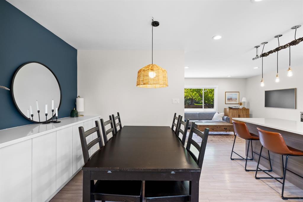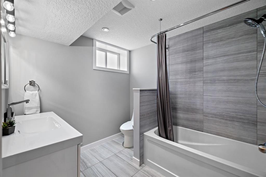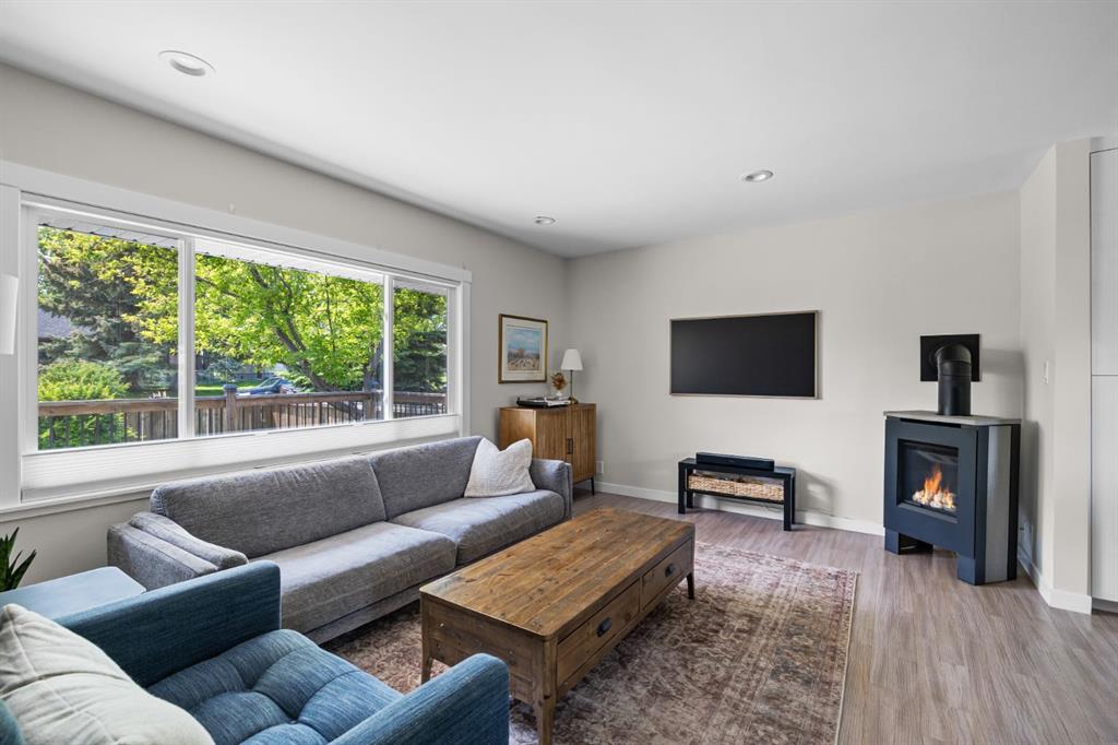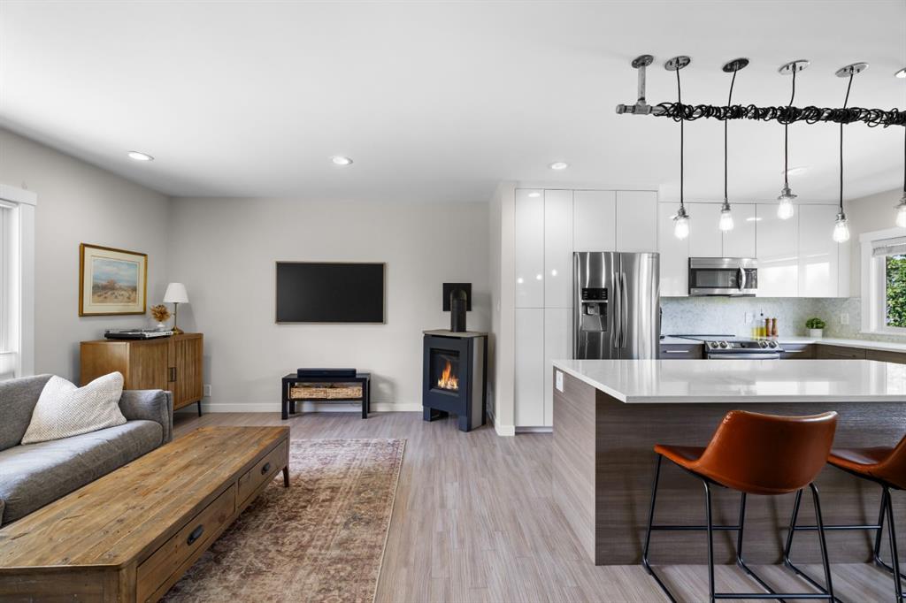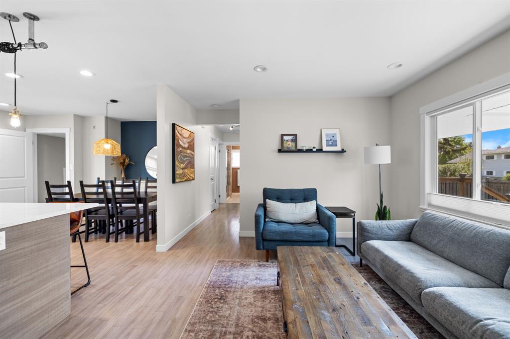 *OPEN HOUSE Sat Oct 18th 2-4 pm* Welcome to this thoughtfully renovated 4-bedroom, 2-bath bungalow offering over 1,900 sq. ft. of beautifully finished living space in one of Calgary’s most desirable inner-northwest communities. Inside, natural light fills the open-concept main floor, blending modern design with timeless comfort. The stunning kitchen showcases sleek two-tone cabinetry, quartz countertops, a large island with seating, and stainless-steel appliances—perfect for everyday living or entertaining. The spacious living room enjoys views of mature trees through a picture window and a cozy gas fireplace, while the adjoining dining area provides the perfect setting for family dinners. Two generous bedrooms and a stylish 4-piece bathroom complete the main level. The fully developed lower level brings exceptional versatility with two additional bedrooms, a full bathroom, a comfortable recreation area with wet bar, and a bright laundry room—ideal for families, guests, or a work-from-home setup. Step outside to enjoy multiple outdoor spaces: a large front deck perfect for morning coffee, a private rear patio with fire-pit area, and a rare rooftop patio above the garage—a peaceful retreat for evenings under the stars. The attached single-car garage and additional off-street parking add year-round convenience. With a newer furnace, hot water tank, windows, A/C, roof, and sewer line, all the big-ticket items have been taken care of, giving you complete peace of mind. Located on a quiet, tree-lined street, this home is just minutes from Confederation Park, SAIT, the Winter Club, and downtown. With quality craftsmanship, smart updates, and a welcoming atmosphere, this home delivers modern living in a mature, established neighbourhood.