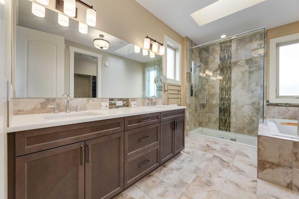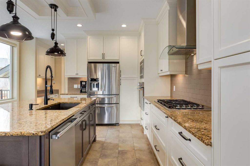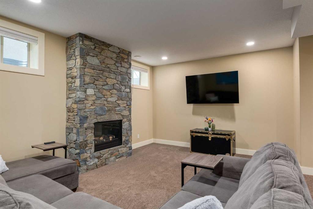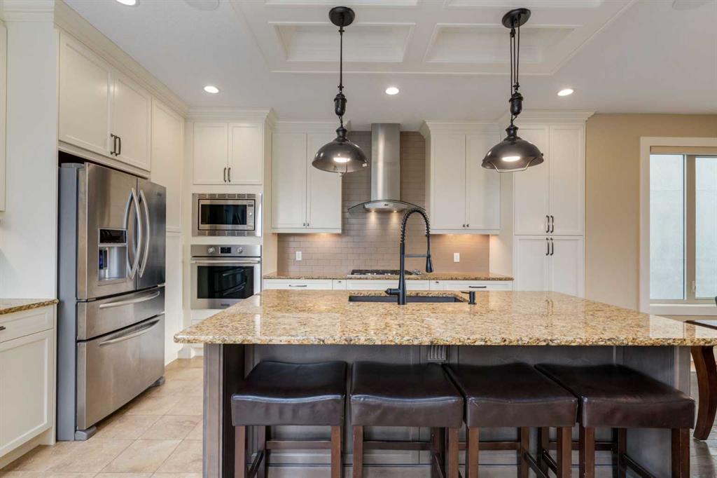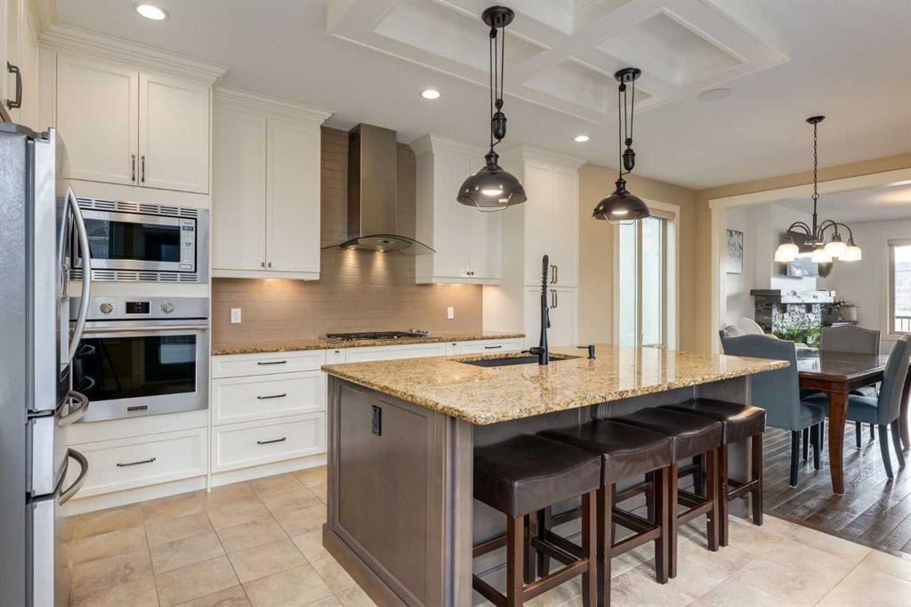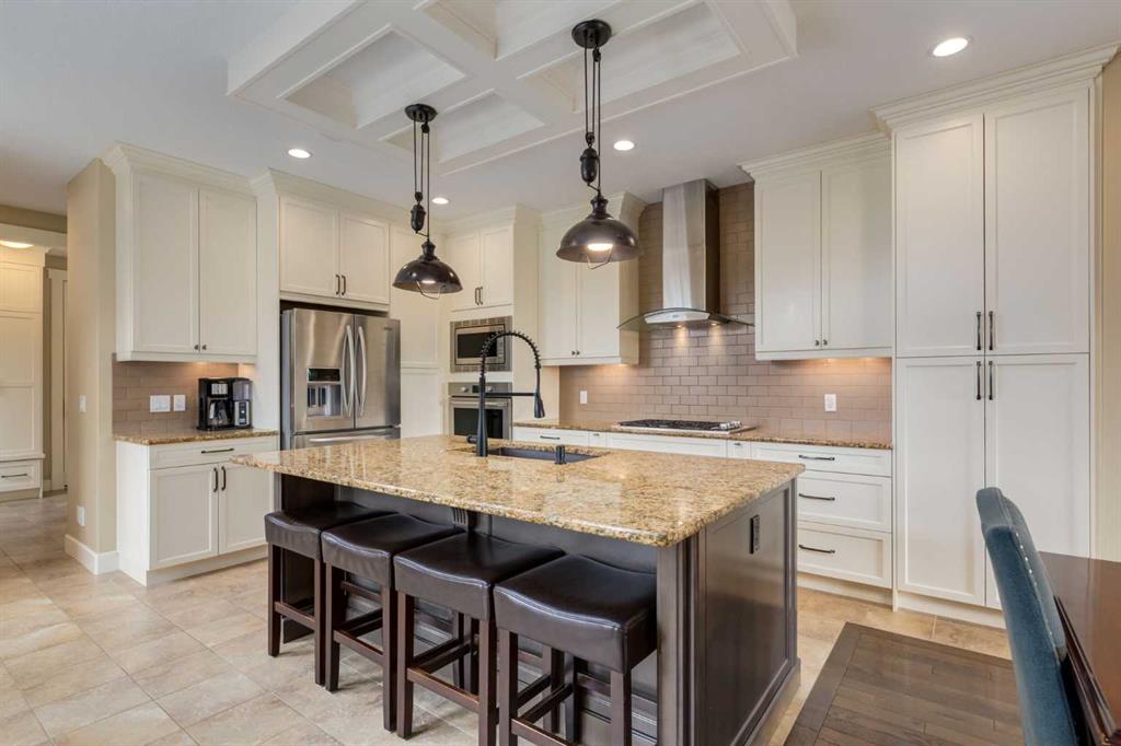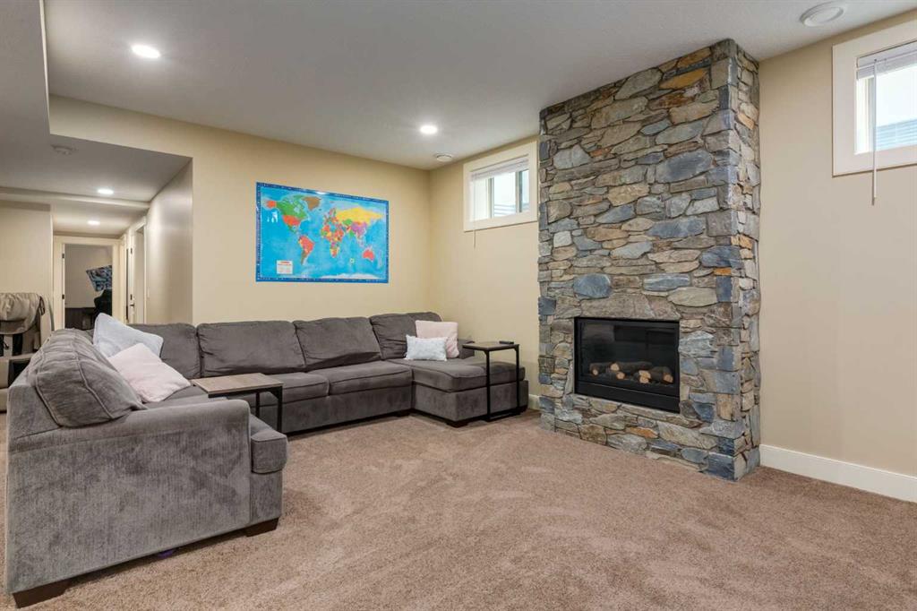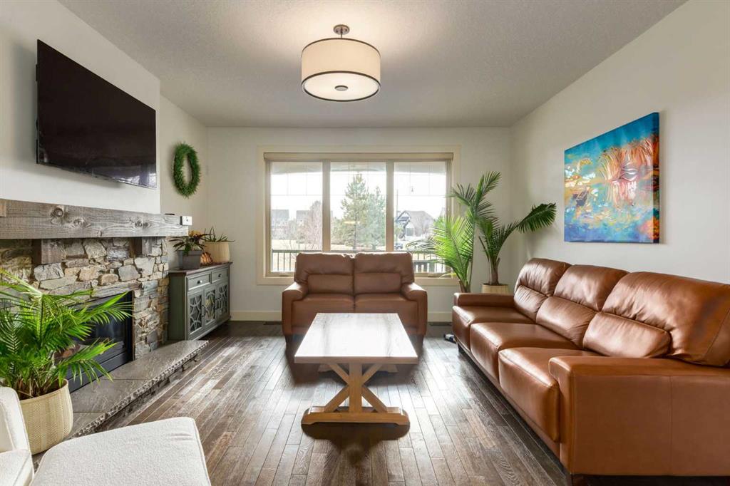 OPEN HOUSE Feb 21st 2-4pm | Parkside elegance ~ Exceptional 5 Bedroom home in the Estates of Cooper’s Crossing with over 3,500 sqft of beautiful finished living space, perfectly positioned on one the community’s most sought-after streets! Cooperstown Court is quiet, family-friendly, with under 30 homes centered around a park and mature green space! Immediately admire its full-width front porch, an incredible place to unwind while enjoying peaceful park views, and the home’s striking stonework and architectural presence. The main floor showcases 9’ ceilings, rich hardwood flooring, and a big tiled Foyer with an organized front closet to welcome you. The front Living Room is anchored by a stunning gas fireplace with full stone surround and wood mantle, framed by large windows overlooking the park. Truly standing-out as the heart of this home is the stunning Kitchen…With floor-to-ceiling classic light cabinetry, granite countertops, tiled backsplash, SS appliances, coffee centre, pantry, AND a massive eat-up island with a built-in sink. From here, step outside to the private backyard oasis with all day sun! Featuring a raised deck, lower stone patio, and fully fenced yard! This open layout is made for entertaining, the Dining area sits between the Kitchen & Living Room, elegantly framed by tile inlay, with an adjacent corner cocktail counter including built-in cabinetry & beverage fridge to tie it all together. Also on the main-level is a huge Office featuring a big window & extensive built-in desk with loads of cabinetry, a spacious Mudroom with built-in desk space, bench seating, surrounded by custom storage & elegant hooks, plus a convenient 2-pc Powder Room. Upstairs, the vaulted Bonus Room has built-in speakers and captures beautiful park views, creating the perfect family retreat. The Primary Suite is a luxurious escape featuring abundant natural light and a spa-inspired 5-pc Ensuite, with fully tiled oversized walk-in shower, dual vanities with stone counters & a full-length mirror, soaker tub beneath the opening window, and SKYLIGHT. The Walk-in Closet is finished with custom wood shelving for a refined touch. Two spacious secondary Bedrooms, a stylish 4-pc Bathroom, and convenient top-floor Laundry add everyday functionality. The builder-finished Basement continues the home’s elevated feel with tall ceilings, bright windows, plush carpeting, and a Family / Rec Room with a spectacular floor-to-ceiling stone gas fireplace. This level also offers TWO additional Bedrooms and a magazine-worthy 3-pc Bathroom with stone counters and a fully tiled oversized walk-in shower – bringing the home to a total of FIVE BEDROOMS! There’s even Central A/C for year-round comfort, but we saved the best for last…The impressive 30 x 23 OVERSIZED DOUBLE DETACHED GARAGE is insulated, drywalled, and features exceptional HEIGHT —ideal for maximizing storage or accommodating a hoist. Located just a short walk to nearby schools, pathways, and amenities, this is a rare opportunity to find!