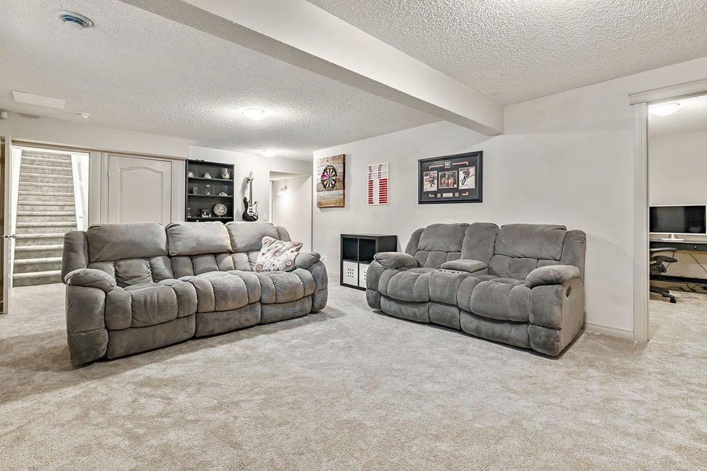 The fully finished basement includes two additional bedrooms, a full bathroom, and a generous family room, providing excellent space for guests, extended family, or recreational use. The exterior features a landscaped yard with seasonal annuals that bloom beautifully, creating an inviting outdoor space to enjoy throughout the warmer months. Ideally located close to parks, pathways, schools, and local amenities, this home offers a great balance of space, comfort, and convenience.