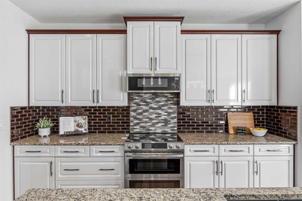 Open House March 14, 2-4pm. Welcome to Air Ranch, one of Okotoks’ most desirable communities. This beautifully maintained two-storey home offers nearly 2,700 sq. ft. above grade, four bedrooms, and a rare heated quad garage with a tandem third bay. (With approximately 826 sq. ft. of garage space, car enthusiasts and hobbyists will appreciate the tandem bay, complete with drains for washing, a sink, insulated doors, a separate ventilation fan for working on cars, and wiring for 220V.) Situated on a quiet street backing directly onto green space, pathways, and a playground, the location is ideal for families who value both privacy and connection to the outdoors. Inside, the main floor features a bright open layout with high ceilings and updated new vinyl flooring throughout. The kitchen is truly the heart of the home with two-tone cabinetry, granite countertops, updated backsplash, a raised eating bar, and a walkthrough pantry complete with built-ins and a coffee bar — an excellent setup for both everyday living and entertaining. The dining area and living room with gas fireplace overlook the backyard and open green space beyond. A main floor office or den, mudroom with great storage, and powder room complete the level. Upstairs you’ll find a spacious bonus room with vaulted ceilings, convenient upper laundry, and three generous bedrooms including the primary suite featuring heated floors in the ensuite, dual sinks, quartz countertops, a soaker tub, and a large walk-in closet. The main upper bathroom also features quartz countertops and an extended vanity with plenty of storage. The fully finished basement adds even more living space with a large recreation room with a second fireplace, fourth bedroom, and full bathroom, making it perfect for movie nights, guests, or a home gym. During the basement development, extra spray foam insulation was added for improved comfort and efficiency. Recent updates provide additional peace of mind, including new paint throughout the walls and baseboards (2025), new carpet (2025), a new refrigerator (2025), and a new hot water tank (2025). Additional features include central air conditioning, wiring for a hot tub under the deck, a dual-zone furnace, water softener, reverse osmosis to the fridge, and excellent storage throughout. Backing onto parks and pathways and located close to schools with quick access to Calgary, this home offers space, functionality, and a fantastic location in one of Okotoks’ most sought-after neighbourhoods.
