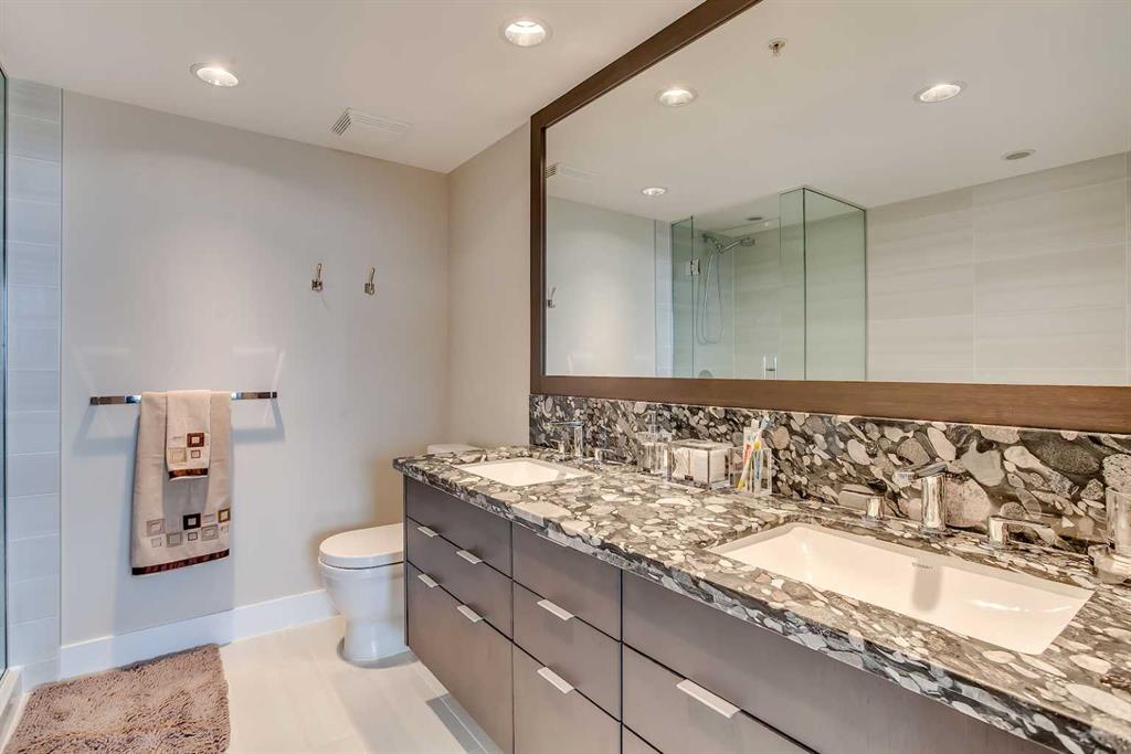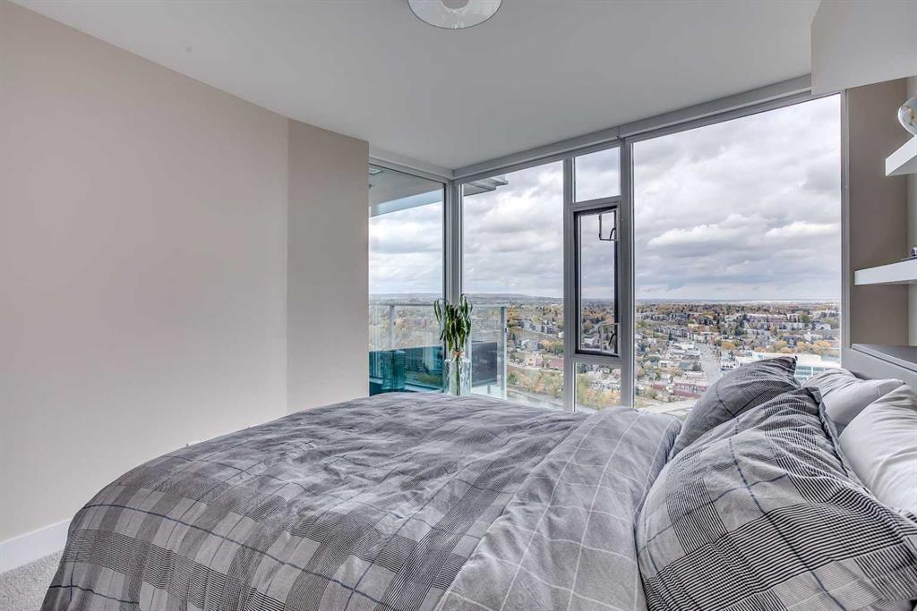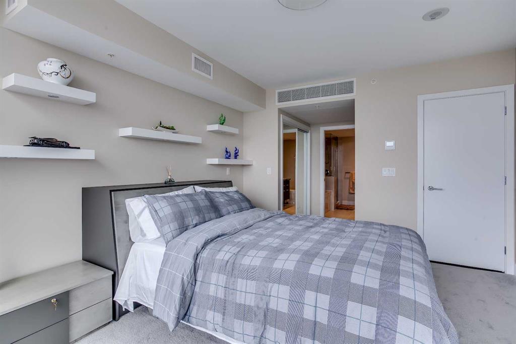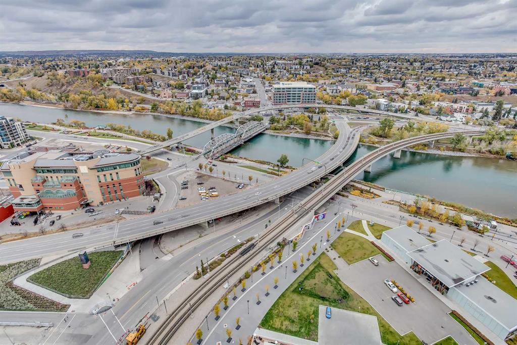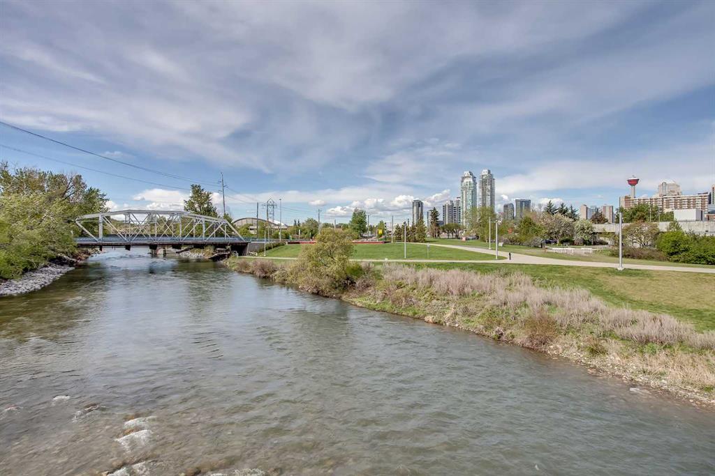 Residents enjoy access to top-tier amenities, including a fully equipped fitness facility with sauna and steam room, a party room, rooftop terrace with BBQ areas, central air conditioning, and convenient concierge service. Everything you need is just steps away—shops, restaurants, entertainment options, transit, and the scenic Bow River Pathway for walking, cycling, or running.