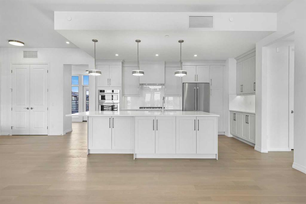 New Price Release — 10 Luxury Reflection Homes Just Completed, Ready for Immediate Occupancy! The Streams of Lake Mahogany present an elevated single-level lifestyle in our stunning Reflection Estate homes situated on the parkside of Mahogany Lake. Selected carefully from the best-selling, renowned Westman Village Community, you will discover THE CASCADE, a home crafted for the most discerning buyer, offering a curated space to enjoy and appreciate the hand-selected luxury of a resort-style lifestyle while providing a maintenance-free opportunity to lock and leave. Step into an expansive 1700+ builders sq ft stunning home overlooking a gorgeous greenspace adjacent to Mahogany Lake featuring a thoughtfully designed open floor plan inviting an abundance of natural daylight with soaring 10-foot ceilings and oversized windows. The centralized living area, ideal for entertaining, offers a Built-in KitchenAid sleek stainless steel package with French Door Refrigerator and internal ice maker and water dispenser, a 36″ gas cooktop, a dishwasher with a stainless steel interior, and a 30-inch wall oven with microwave; all nicely complemented by an Elevated Nordic Color Palette. All feature stunning Quartz countertops. You will enjoy two beautiful bedrooms and a generous central living area. The Primary Suite features a spacious 5-piece oasis-like ensuite with dual vanities, a large soaker tub, a stand-alone shower, and a generous walk-in closet. The Primary Suite and main living area step out to a 39 ft x 15 ft terrace with a lovely view of the greenspace. Yours to enjoy and soak in every single day. To complete the package, you have a sizeable office area adjacent to the spacious laundry room, and a double-attached heated garage with a full-width driveway. Custom additions to this home include under-cabinet lighting, an upgraded Moen plumbing fixture package, air conditioning, a convenient laundry room with a folding table, a stunning electric fireplace, and an expansive covered terrace with access from the Living Room, Dining Room, and owner’s suite. Jayman’s standard inclusions feature their trademark Core Performance, which includes Solar Panels, Built Green Canada Standard with an Energuide rating, UVC Ultraviolet light air purification system, high-efficiency heat pump for air conditioning, forced air fan coil hydronic heating system, active heat recovery ventilator, Navien-brand tankless hot water heater, triple pane windows and smart home technology solutions. Enjoy Calgary’s largest lake, with 21 more acres of beach area than any other community.