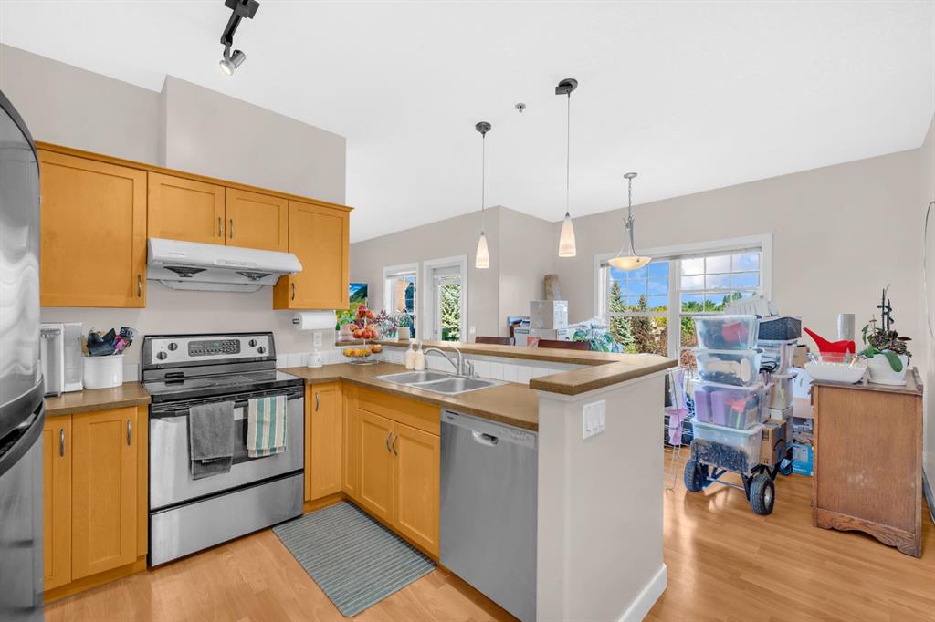 Beautiful, very well maintained, pristine condition 2 bed, 2 bath Corner unit condo located in historic Inglewood, steps from Pearce Estate Park, a picturesque wetland park featuring a fish hatchery, playground, picnic sites, custom-designed kayak course right on the river, plus miles of riverside walking and biking trails. This spacious 919 sq. ft unit is located in desirable Pearce Gardens. The perfect location to enjoy nature in an urban setting. As you enter this 3rd-floor unit, you will appreciate the open and bright floor plan, including 9-foot ceilings, large windows, and functional floor plan. Open living areas including a functional kitchen equipped with stainless steel appliances, a brand new dishwasher with 2 years warranty, a breakfast bar overlooking a dining area and a spacious living room provides access to the private balcony, perfect for all your grilling endeavors. The large primary bedroom includes a walk-through closet plus a 4 piece ensuite with astanding shower. The second bedroom with ample storage space shares the main 4-piece bath. In-suite laundry and storage area conveniently located in the hallway by the bedrooms. Pearce Gardens offers top-tier amenities including a fitness facility, party room with kitchen, and outdoor patio space. Additionally, this unit comes with one oversized titled parking stall and storage in the underground parkade with a secure entry system and well-kept surroundings, you’ll love calling this home. This well maintained unit offers an amazing lifestyle with easy access to shops and services of vibrant Inglewood, plus a quick commute to the core. Call today for more information!