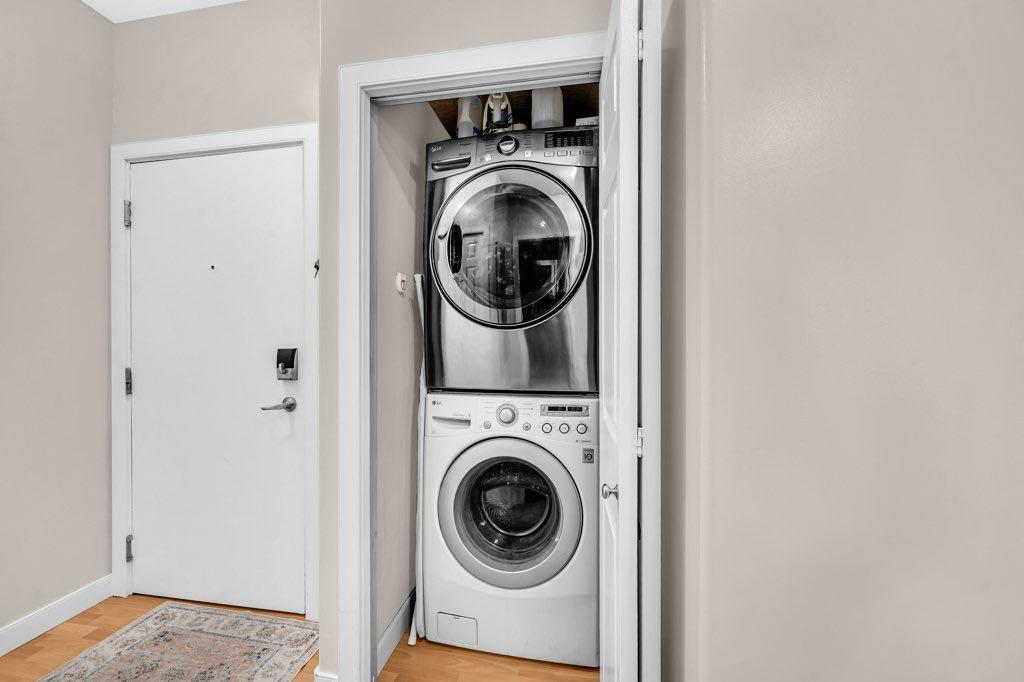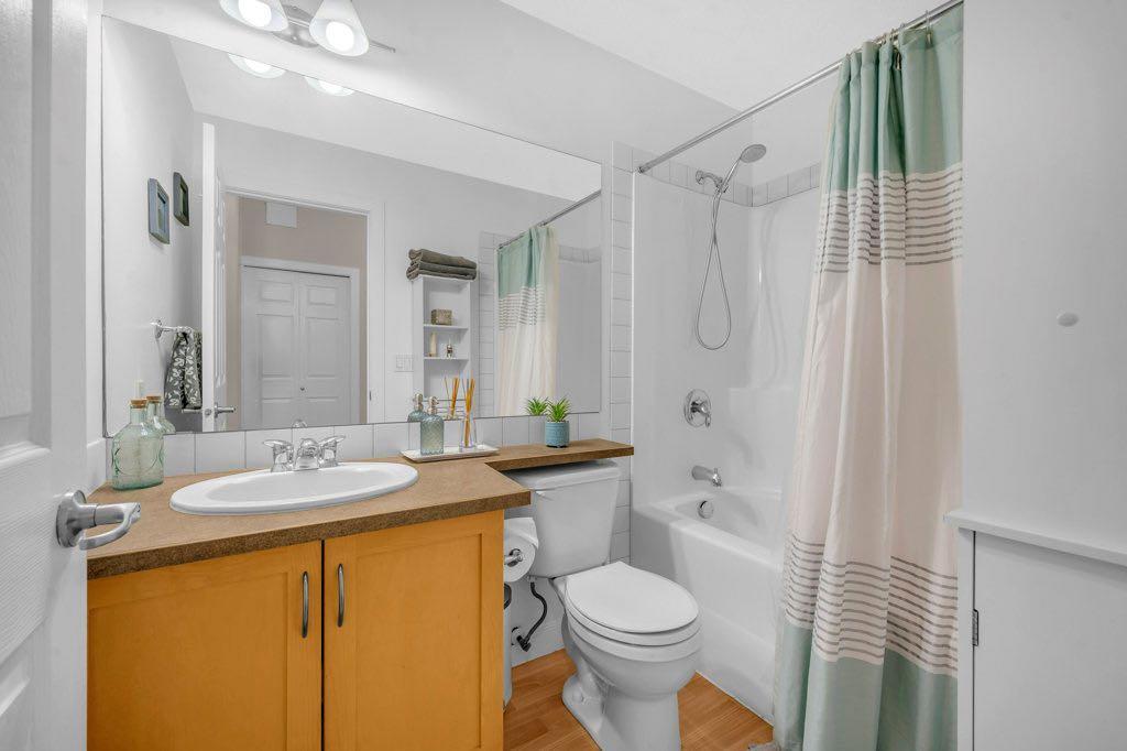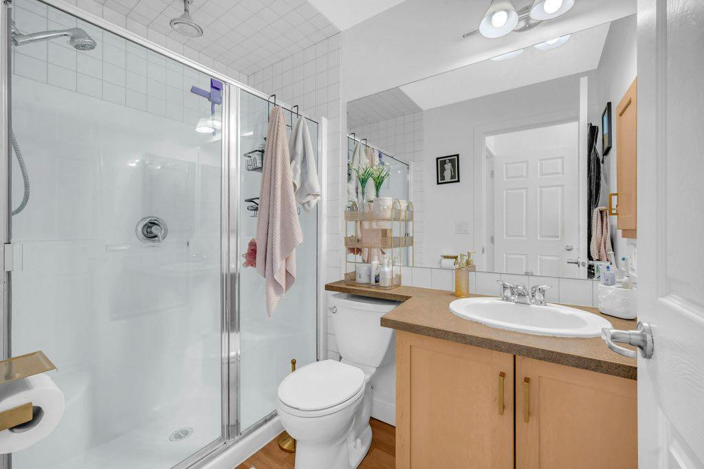 **Open House Saturday 8th November 1-3 PM** Corner Unit | Underground Parking & Storage locker | Downtown View. Beautiful, very well maintained, pristine condition 2 bed, 2 bath Corner unit condo located in historic Inglewood, steps from Pearce Estate Park, a picturesque wetland park featuring a fish hatchery, playground, picnic sites, custom-designed kayak course right on the river, plus miles of riverside walking and biking trails. This spacious 919 sq. ft unit is located in desirable Pearce Gardens. The perfect location to enjoy nature in an urban setting. As you enter this 3rd-floor unit, you will appreciate the open and bright floor plan, including 9-foot ceilings, large windows, and functional floor plan. Open living areas including a functional kitchen equipped with stainless steel appliances, a brand new dishwasher with 2 years warranty, a breakfast bar overlooking a dining area and a spacious living room provides access to the private balcony, perfect for all your grilling endeavors. The large primary bedroom includes a walk-through closet plus a 4 piece ensuite with astanding shower. The second bedroom with ample storage space shares the main 4-piece bath. In-suite laundry and storage area conveniently located in the hallway by the bedrooms. Pearce Gardens offers top-tier amenities including a fitness facility, party room with kitchen, and outdoor patio space. Additionally, this unit comes with one oversized titled parking stall and storage in the underground parkade with a secure entry system and well-kept surroundings, you’ll love calling this home. This well maintained unit offers an amazing lifestyle with easy access to shops and services of vibrant Inglewood, plus a quick commute to the core. Call today for more information! Availble for quick possession.