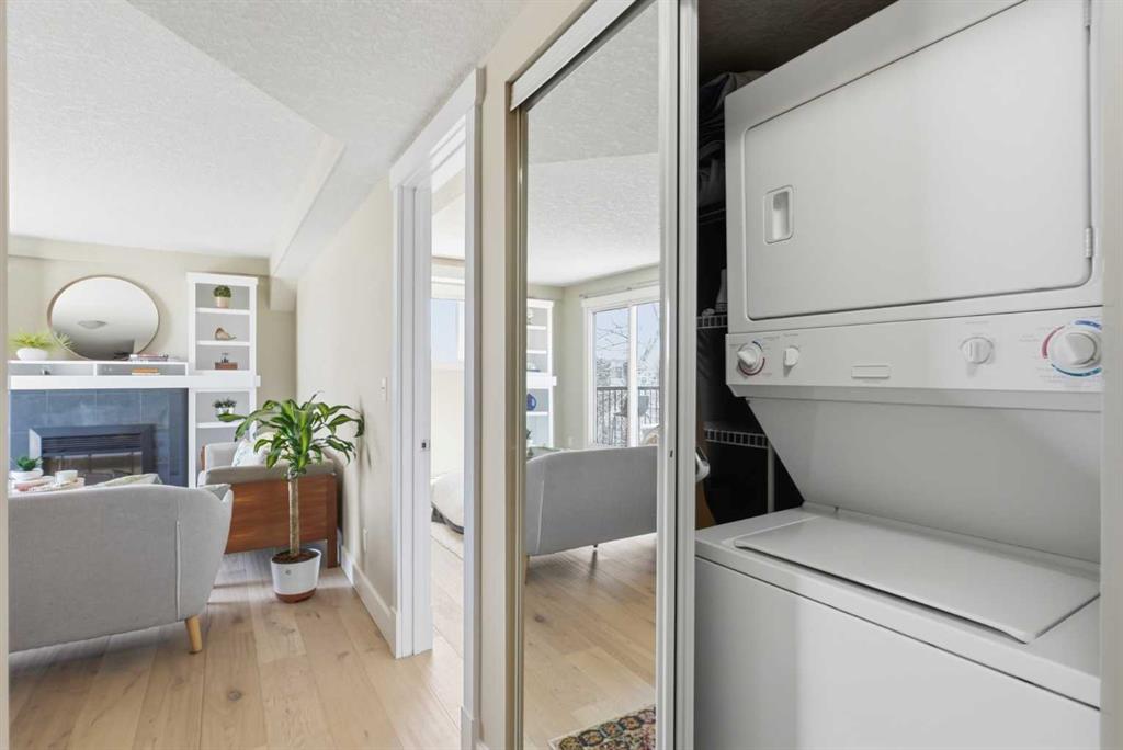 The bedroom offers a peaceful retreat with a generous walk-in closet, and the 4-piece bathroom features a soaker tub. In-suite laundry, an additional storage locker, and an assigned underground parking stall round out the everyday essentials.