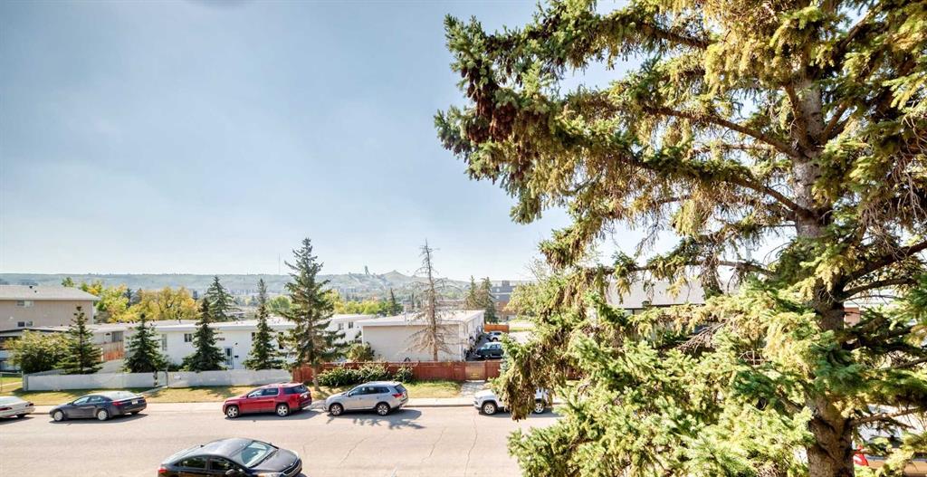 Sun-Filled Top Floor Gem with South-Facing Balcony. Step into this bright and inviting top-floor condo, where sunlight pours in through the large south-facing windows. Start your mornings with coffee on your private balcony, surrounded by treetop views and bathed in sunshine. The floor plan features a spacious living room, a modern kitchen with plenty of cabinetry, and a cozy dining nook with direct balcony access. The generously sized bedroom offers both comfort and storage with a murphy bed and a walk-in closet. A 4-piece bathroom, in-suite mini washer, and plug-in parking stall add to the convenience. Located in the heart of Bowness, you’re surrounded by shopping, schools, and the beautiful parks, which are perfect for weekend strolls, rafting on the Bow River, or simply unwinding in nature. With quick access to the mountains, you’ll have adventure at your doorstep while still enjoying the ease of city living. Whether you’re looking for a dream home or you’re an investor, this home is the perfect opportunity!