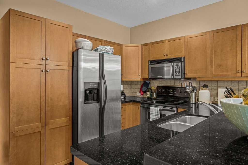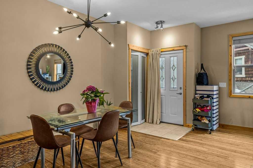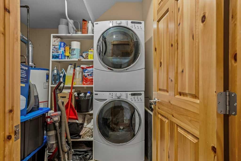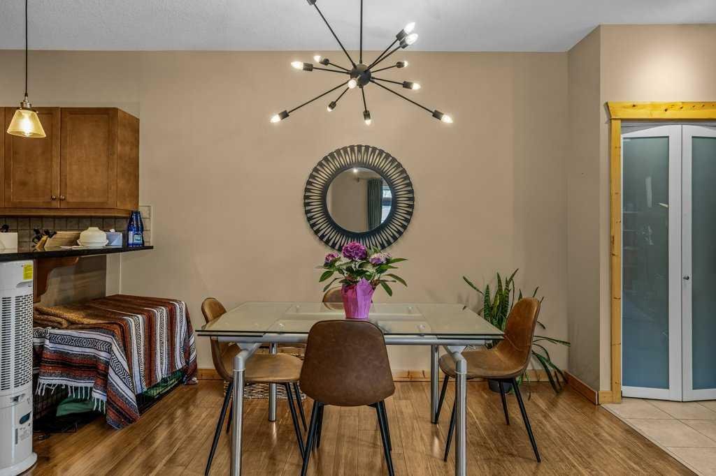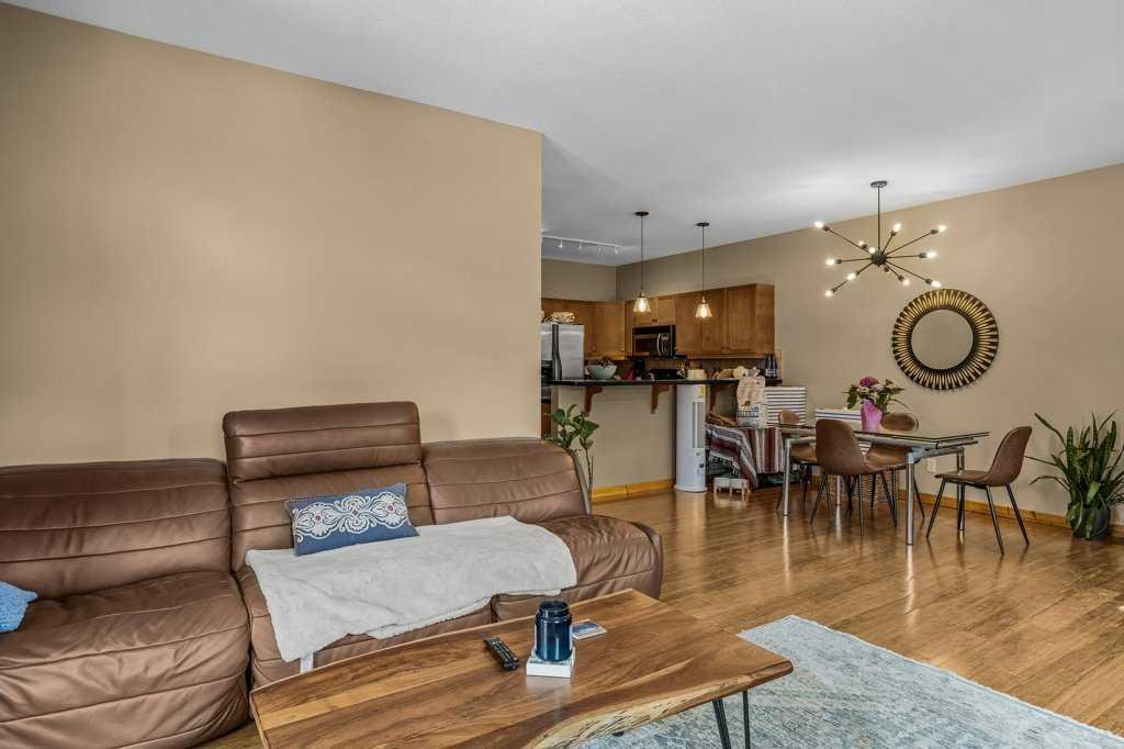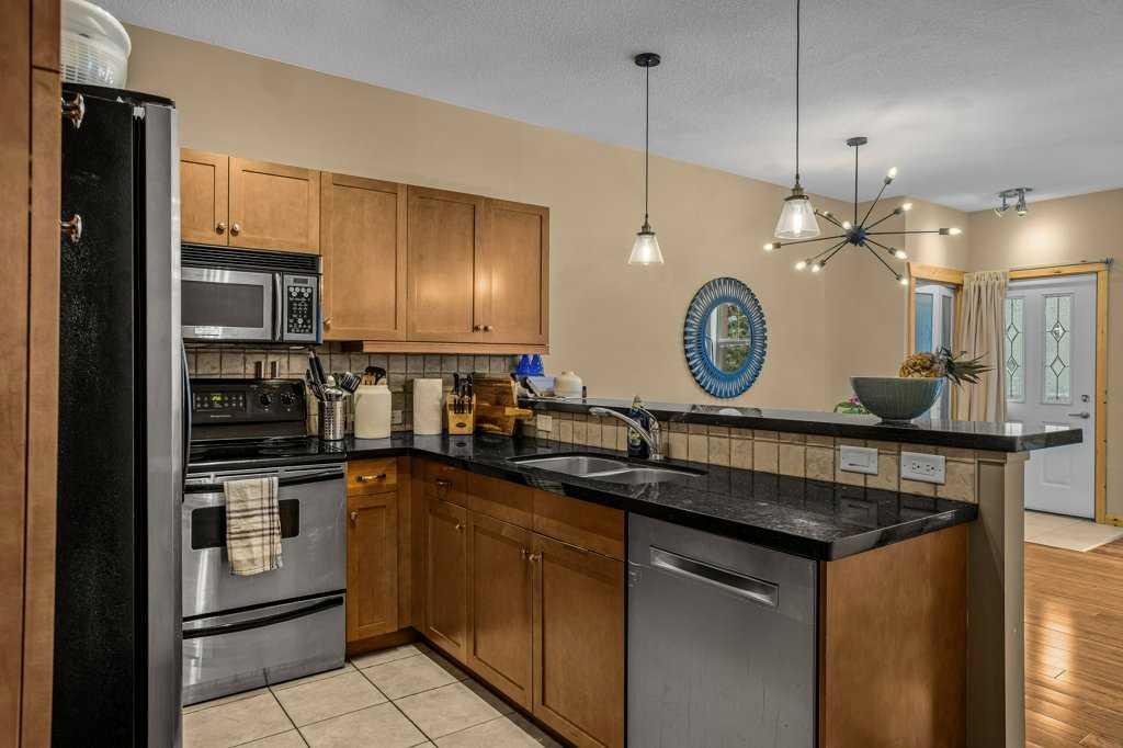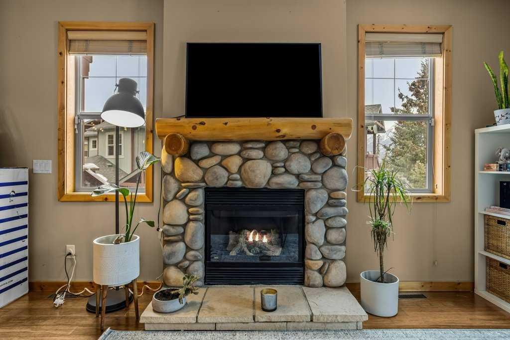 Welcome to this charming, updated corner townhome in beautiful Canmore. This inviting 2-bedroom, 2-bathroom home offers 1180 sq.ft. of thoughtfully designed open-concept living space, perfect for both everyday comfort and entertaining. Step inside to discover a warm, rustic mountain feel, highlighted by hardwood floors, wood trim, and wood baseboards throughout. The spacious living area features a cozy river rock-surround gas fireplace, creating the perfect ambiance for relaxing after a day in the mountains. The kitchen is both stylish and functional, complete with granite countertops and stainless steel appliances. The primary bedroom includes a private ensuite bathroom, while the second bedroom provides flexibility for guests, a home office, or additional family space. Enjoy the convenience of separate in-unit laundry and dedicated storage. This home also features an attached single-car garage with extra storage space behind—ideal for all your mountain gear. Call your Associate today to view!