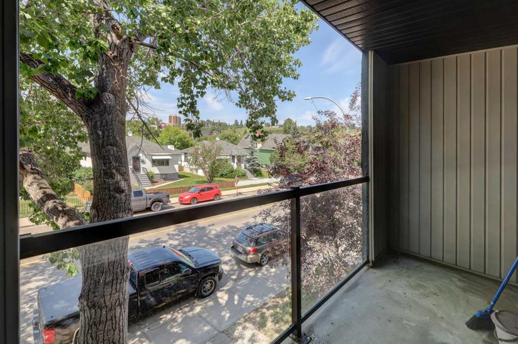 Freshly painted Oct 2025 with light neutral desiner colours! Short Term Rentals permitted with appropriate city licenses in sought after Sunnyside! Lovely updated 2-bedroom end unit in a concrete building. Stone counters, wood cabinets, cozy fireplace and large balcony with peaceful treed street front views. In suite laundry with storage PLUS a separate storage locker and covered off street parking. This quiet home has been owner occupied for 19 years and is in great condition. Amazing walkable location just 2 blocks to all your favorite Kensington shops and restaurants, 1 block to the Peace Bridge into downtown, 1 block to Bow River pathways, 2 blocks to Sunnyside LRT station, 8 blocks to SAIT, and tons of green space nearby. Pet friendly building. Condo fees include covered parking, heat, water & sewer. A great opportunity in an unbeatable location! This immaculate home is vacant and ready for you to move right in! Click on 3D for interactive 3D floorplans.