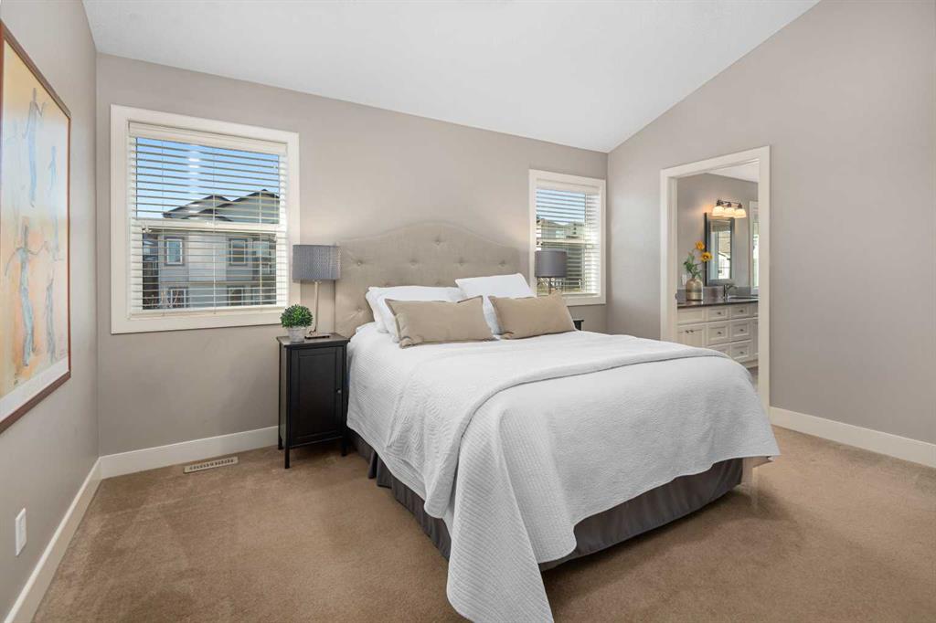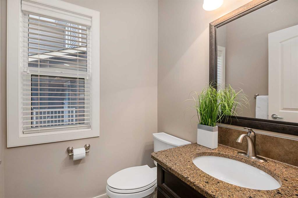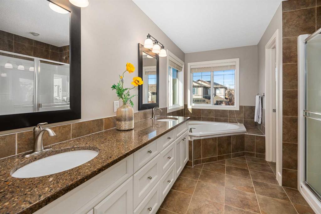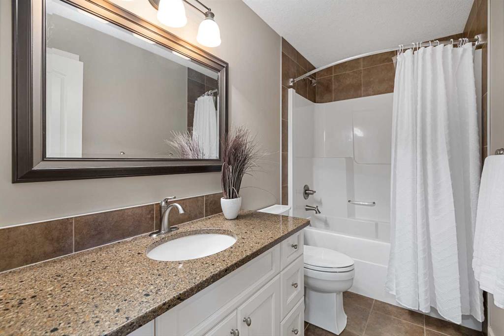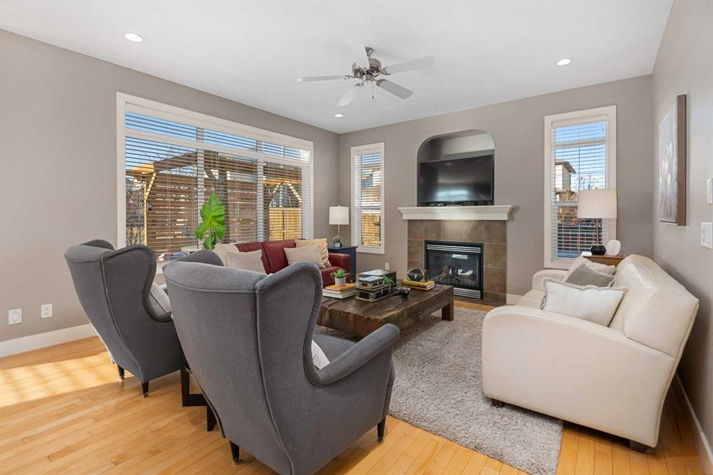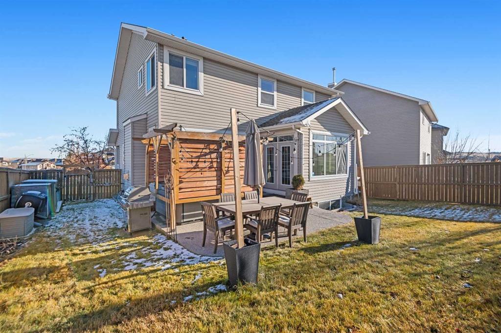 An expansive living room with large windows and gas fireplace creates a cozy space on a chilly evening. You will appreciate the white kitchen, equipped with upgraded cabinets, quartz countertops, stainless steel appliances and under-counter task lighting. There is plenty of counter space and cupboards as well as a pantry. The breakfast bar is a great place to relax over morning coffee. The adjoining dining area features more oversized windows that overlook the private backyard, where trees and shrubs offer added privacy. The backyard is great for entertaining, complete with a pergola and concrete aggregate patio. Unwind after a long day in the hot tub. The functional, thoughtfully designed main floor also features a convenient laundry room and a powder room. The second floor bonus room is bathed in natural light and features vaulted ceilings. The primary bedroom is a true sanctuary, with another vaulted ceiling, a spacious layout with large walk in closet and an 5-piece ensuite bathroom. Indulge in the double vanities with quartz counters, a double shower with a bench, and a relaxing corner soaker tub. Two additional kid-friendly bedrooms and a well-appointed 4-piece bathroom complete this level, along with extra storage options provided the linen closet and a dedicated storage closet in the main bath. The unfinished basement presents a blank canvas, offering lots of storage space and the perfect opportunity to create the additional living area of your dreams! You’ll love the impressive upgrades throughout, including crown mouldings, 9-foot ceilings, and hardwood floors. There is a new, high efficiency furnace to keep you comfortable this winter. This lovely family home has an ideal location, backing onto a walking path, and is just minutes away from schools, playgrounds, green spaces, and convenient shopping options. Experience the perfect blend of comfort, style, and functionality. Quick possession is possible – be home in time for Christmas!