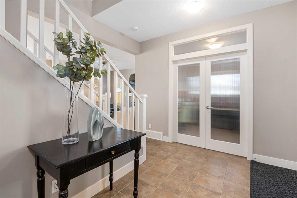 As you step inside, you are greeted by a large entrance featuring ceramic tile floors that lead you to a versatile main floor office. This space has French doors and a transom windows for extra light, making it the perfect spot for work or study