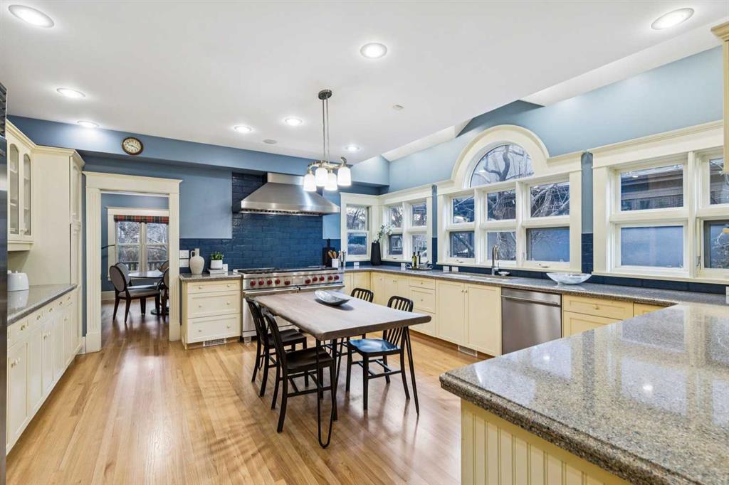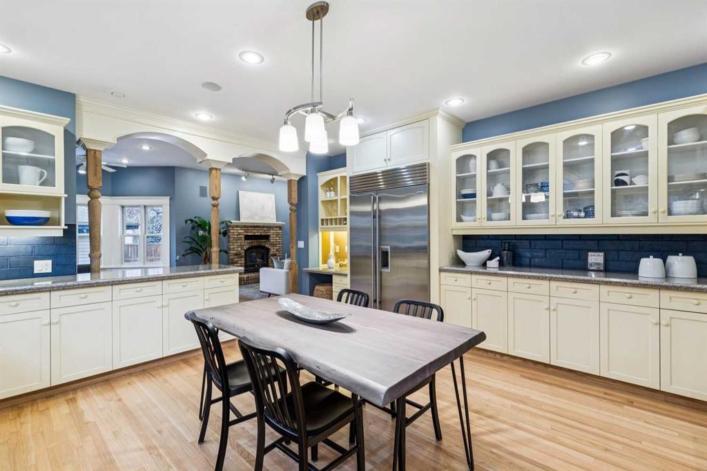 OPEN HOUSE Saturday February 7 2026, 1:00-3:30PM. Perfectly positioned in the heart of Elbow Park just steps from the Glencoe Club, this distinguished Queen Anne–style residence offers a rare opportunity to plant roots in one of Calgary’s most cherished family neighbourhoods. Set on an exceptional oversized lot with coveted 75’ frontage and a sun-drenched west-facing backyard, this is a home where children can walk to social activities, swimming, skating, or tennis lessons at the Club. This is a home for generations to gather for the holidays, celebrations, and everyday living. Rich in warmth and architectural authenticity, the home was masterfully built in 1993 to reflect and respect the historic charm of Elbow Park, showcasing timeless design through its classic center hall plan, gabled rooflines, wrap-around veranda, and signature hexagonal tower feature. Inside you’ll find extensive wainscotting, crown moulding, decorative tile-work, and elegant 9’ ceilings. The main floor unfolds beautifully for both entertaining and daily life, with a living room anchored by a wood-burning fireplace and charming bay window, and a gracious dining room across the entry. The kitchen presents remarkable opportunity with its stunning wall of south-facing arched windows, premium Wolf double oven range, Sub-Zero refrigerator, and generous cabinetry, all offering exceptional space and flow for future personalization. A sun-filled breakfast nook wrapped in windows within the tower opens to a cozy family room with built-in bookcases and brick fireplace, creating a natural gathering space. A generous, quiet office with clerestory window, a powder room, and practical mudroom complete the level. Upstairs, a flexible lounge or homework area supports busy family life, while the expansive primary retreat offers a private sanctuary with a fireplace, dual walk-in closets, and a breathtaking turret sitting area with south and west views beneath a vaulted hexagonal ceiling. Three additional spacious bedrooms, full bath, and upper laundry room enhance functionality for growing families. The fully developed lower level adds approximately 1,535 square feet of versatile living space including a recreation area, media room and built in cabinets and bookcases. A fifth bedroom is an ideal room for guests, teens, or live-in support, and the bathroom has a secondary laundry. With refinished hardwood floors, new carpeting, and Poly-B plumbing already removed, this home offers the rare advantage of being move-in ready while allowing thoughtful updates over time, a far easier and faster process than building new in this premier location. Surrounded by mature trees and exceptional outdoor living spaces including a large south patio with fire-pit, lawn, side driveway, and a heated triple detached garage, this is a legacy property where lifestyle, community, and opportunity come together beautifully.