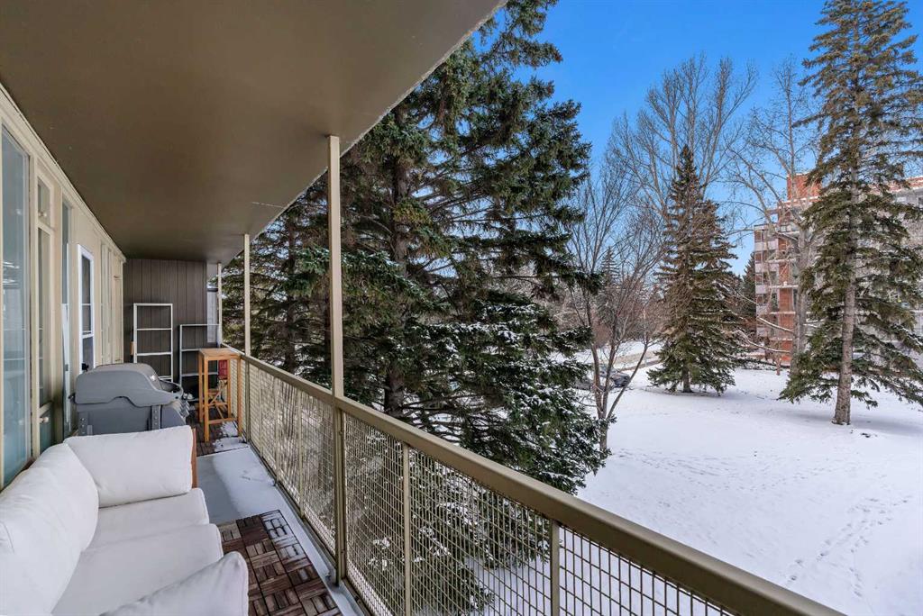 Don’t miss this stylish, move-in-ready 1-bedroom condo in beautiful Rideau Towers. Rutland House is set in a quiet, park-like setting just a short walk to the river and pathways, 4th Street, the downtown core, and the Stampede Grounds. This bright unit features an open floor plan with huge windows and a spacious living area open to the kitchen, complete with granite countertops, stainless steel appliances, a large island with seating, and tons of storage. The bedroom offers a walk-in closet and in-suite laundry, while the updated bathroom includes a deep soaker tub and modern vessel sink. Enjoy summer evenings on the massive 31-foot balcony that spans the length of the unit and overlooks the private, beautifully manicured grounds. Additional highlights include a storage locker, laundry facilities, ample street and visitor parking, and an outdoor pool. This quiet, pet-friendly building is truly special and in an ideal location. Whether you’re entering the market or looking to downsize, this is your opportunity to enjoy urban living at its best.