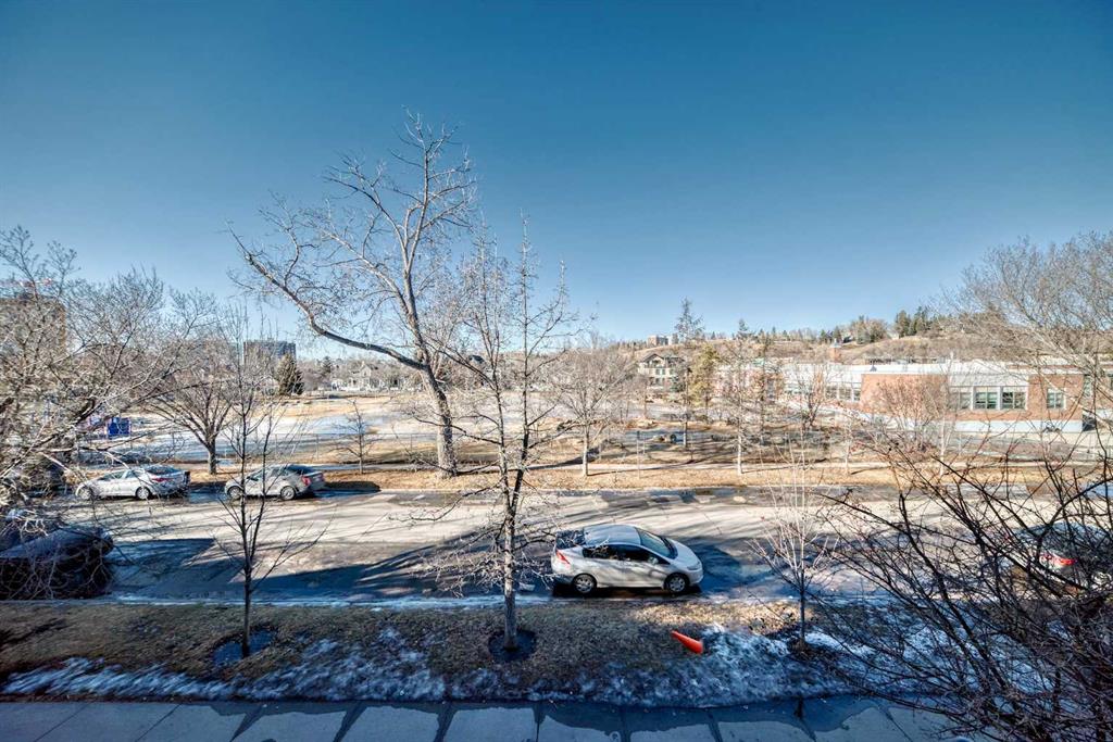 Welcome to this beautifully updated 2-bedroom condo located in the highly sought-after community of Sunnyside, where urban convenience meets neighbourhood charm. Situated in the heart of the city, you’re just steps from everything Calgary has to offer—C-Train access, shopping, restaurants, schools, parks, playgrounds, and the entire downtown core are all within walking distance. This bright and inviting 2-bedroom, 1-bath home has been extensively renovated throughout. The kitchen features warm maple cabinetry, granite countertops, and a stylish glass tile backsplash, flowing seamlessly into the dining area accented by a striking feature wall. From there, the space opens into a spacious, bright living room with access to a private balcony overlooking the park across the street—an ideal and rare inner-city retreat to relax and unwind. The generously sized primary bedroom includes custom built-in closet storage, while the second bedroom also offers ample space and its own built-in closet. The fully renovated 4-piece bathroom showcases bright white tile, a deep soaker tub, and dual shower heads. A large linen closet is conveniently located in the hallway, and the unit also offers a dedicated in-suite storage room with laundry. Additional amenities include a coin-operated laundry room with utility sink on the lower level and secure bike storage. A convenient parking stall with plug-in is included, along with permit street parking and ample visitor parking. Excellent transit access connects you seamlessly to downtown, SAIT, the University of Calgary, and Foothills Medical Centre via nearby LRT and bus routes. Don’t miss this incredible opportunity to own a stylish, move-in-ready condo in one of Calgary’s most vibrant inner-city communities.