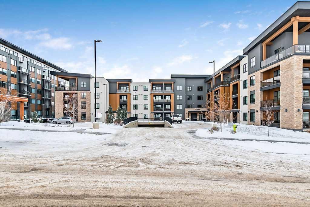 Welcome home to this beautifully upgraded 1 bedroom adorable condominium that combines modern style with everyday convenience. As you enter, you will immediately fall in love with the bright, open concept living area, featuring large windows, luxury vinyl plank flooring, and a warm, cheerful vibe throughout. The gorgeous kitchen is a true highlight, boasting 40″ upper cabinets extended to the ceiling with filler, elegant quartz countertops, stainless steel appliances (including a fridge with ice and water), and an abundance of both cabinet and counter space. The laundry area is cleverly tucked away in its own dedicated closet for added convenience. Step into the spacious living room with patio doors leading out to your private balcony, the perfect spot to unwind or entertain, complete with space for seating and a gas line for your BBQ. The bedroom is generous in size, easily accommodating a king-size bed and featuring a walkthrough closet that leads to the stylish 4 piece bathroom, with quartz counters, great storage, and tile to the ceiling in the tub/shower. This fabulous home also includes a prime end unit parking stall in the heated parkade, offering extra storage and the incredible bonus of an EV plug for your convenience. Enjoy a pet friendly building (with approval) in a walkable community featuring scenic paths, close access to transit and the LRT, and an impressive selection of shops, restaurants, and amenities just steps from your door. You may never need to drive again. The perfect blend of modern upgrades, thoughtful design, and unbeatable location, this condo truly has it all. Don’t miss your chance to call this charming home your own. This is an incredible way to get into the Calgary market.