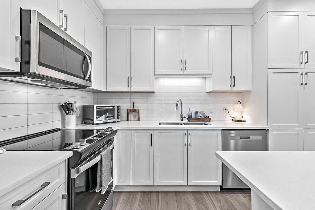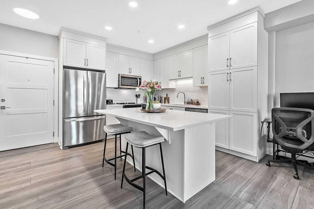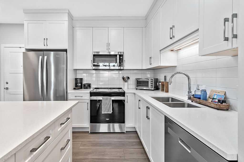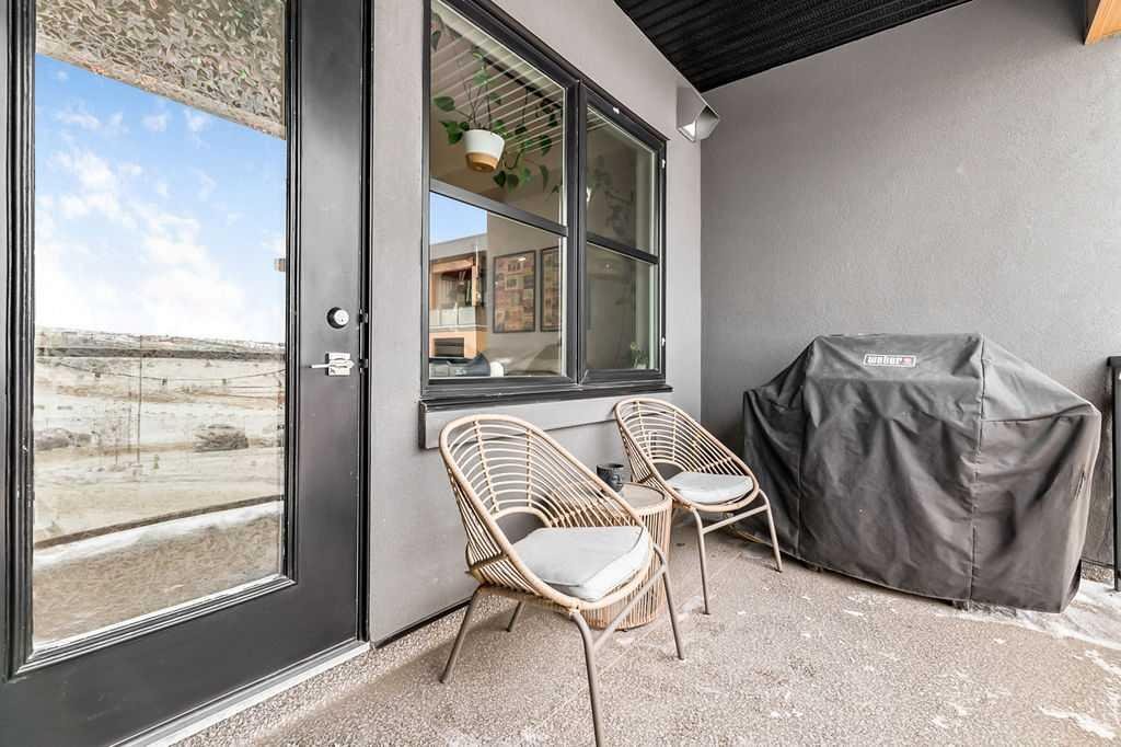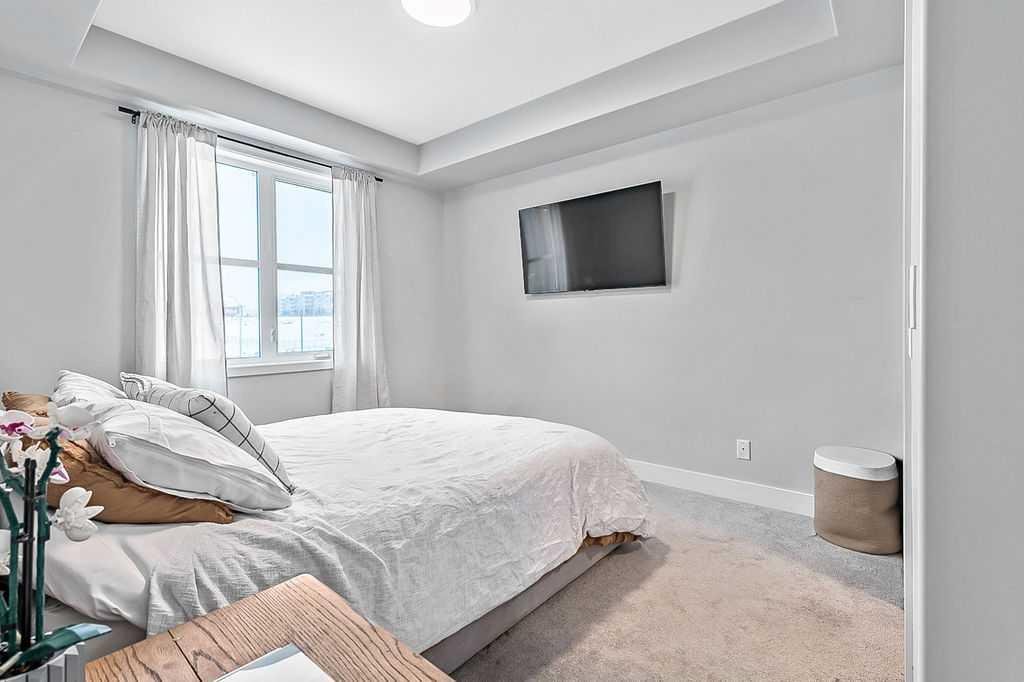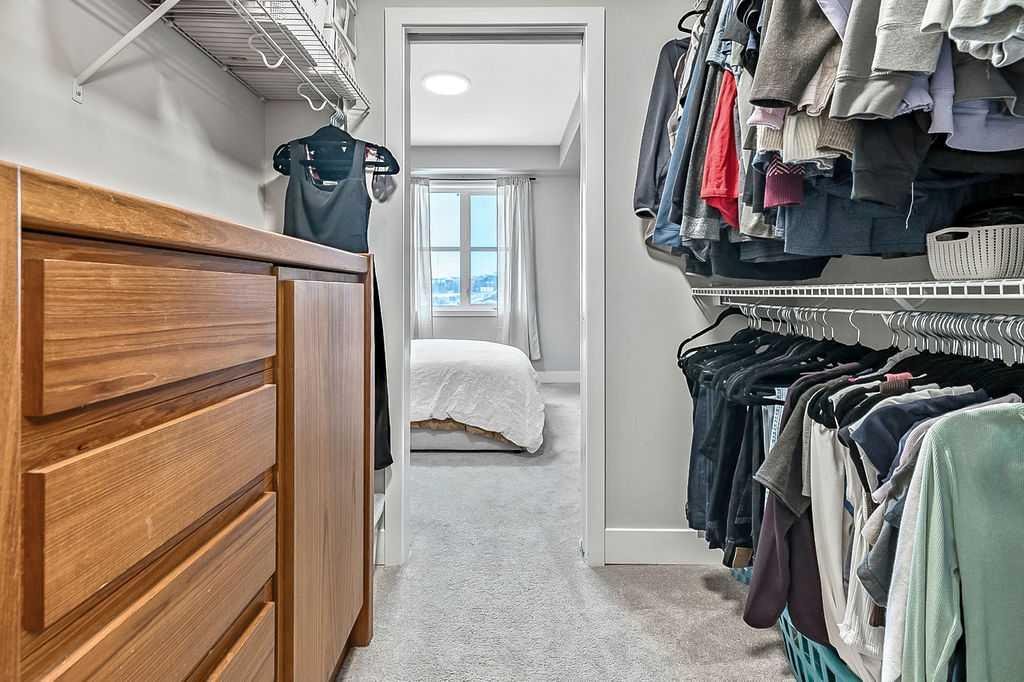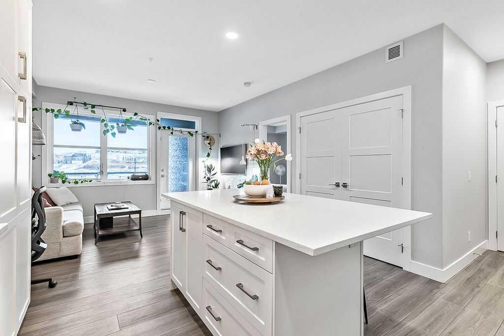 Welcome to stylish, low maintenance living in the heart of Calgary. This beautifully upgraded one bedroom condominium offers the perfect balance of modern finishes and everyday functionality, ideal for first time buyers, investors, or anyone looking to simplify without sacrificing style. From the moment you step inside, you will appreciate the bright open layout, enhanced by large windows and luxury vinyl plank flooring that flows throughout the main living space. The atmosphere is warm and inviting, with a layout designed to make the most of every square foot. The kitchen is sure to impress with 40 inch upper cabinets extended to the ceiling with filler, sleek quartz countertops, stainless steel appliances including a fridge with ice and water, and generous cabinet and counter space. Whether you love to cook or prefer to entertain, this kitchen delivers both beauty and practicality. The in suite laundry is thoughtfully tucked away in its own dedicated closet, keeping everything neat and out of sight. The spacious living room has patio doors to your private balcony, offering room for comfortable seating and complete with a gas line for your BBQ. It is the perfect place to relax at the end of the day or host friends on warm evenings. The bedroom easily fits a king size bed and features a convenient walkthrough closet leading to the elegant four piece bathroom. Here you will find quartz counters, excellent storage, and tile that extends to the ceiling in the tub and shower, creating a polished, upscale feel. This home also includes a prime end unit parking stall in the heated parkade, complete with additional storage and the added bonus of a private EV plug. The pet friendly building welcomes your furry companions with approval. Set within a walkable community filled with scenic pathways, easy access to transit and the LRT, and an array of shops, restaurants, and amenities just steps away, the location is truly exceptional. You may find you rarely need your car. With modern upgrades, smart design, and an unbeatable setting, this is an incredible opportunity to enter the Calgary market in style.