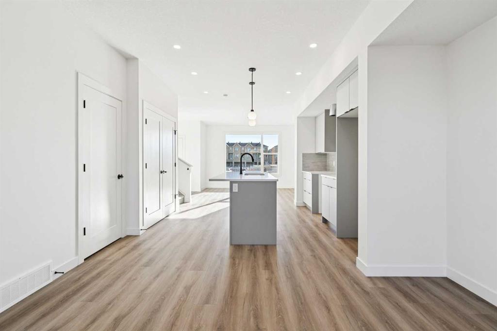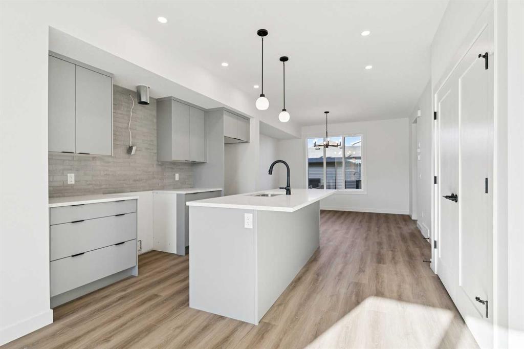 The “Irvine” by Fifth Avenue Homes provides an open plan, with a well-appointed kitchen and comfortable living space. The main floor features a huge great room, adjoining dining area, dream kitchen highlighted by an island with breakfast bar, Quartz countertops & custom tile backsplash, access to the large 10×10 deck & 2 pc bath. The upper level offers two spacious bedrooms, 4 pc bath, a gorgeous primary suite with walk-in closet + a 3 pc ensuite & laundry. Undeveloped lower level with loads of storage and mechanical. Double detached garage. High-end plumbing & lighting fixtures throughout! Fifth Avenue Homes is well known for above standard finishings & attention to detail both in design & workmanship. This listing has just been completed & is ready for occupancy – pick your possession & move right in. Just minutes away from East Hills Shopping Center (Costco, movie theatre, shops & restaurants), close to future CBE elementary school site & 10 minutes to downtown on the Max Purple transit. Belvedere offers a wonderful family lifestyle with parks, natural wetlands and pathways. Book a showing with your Realtor today!