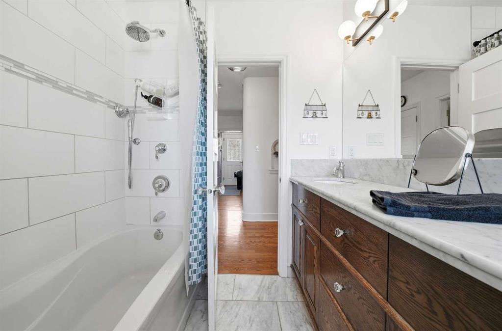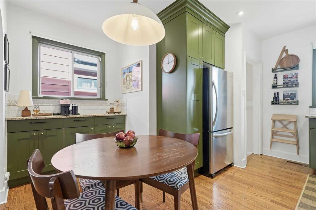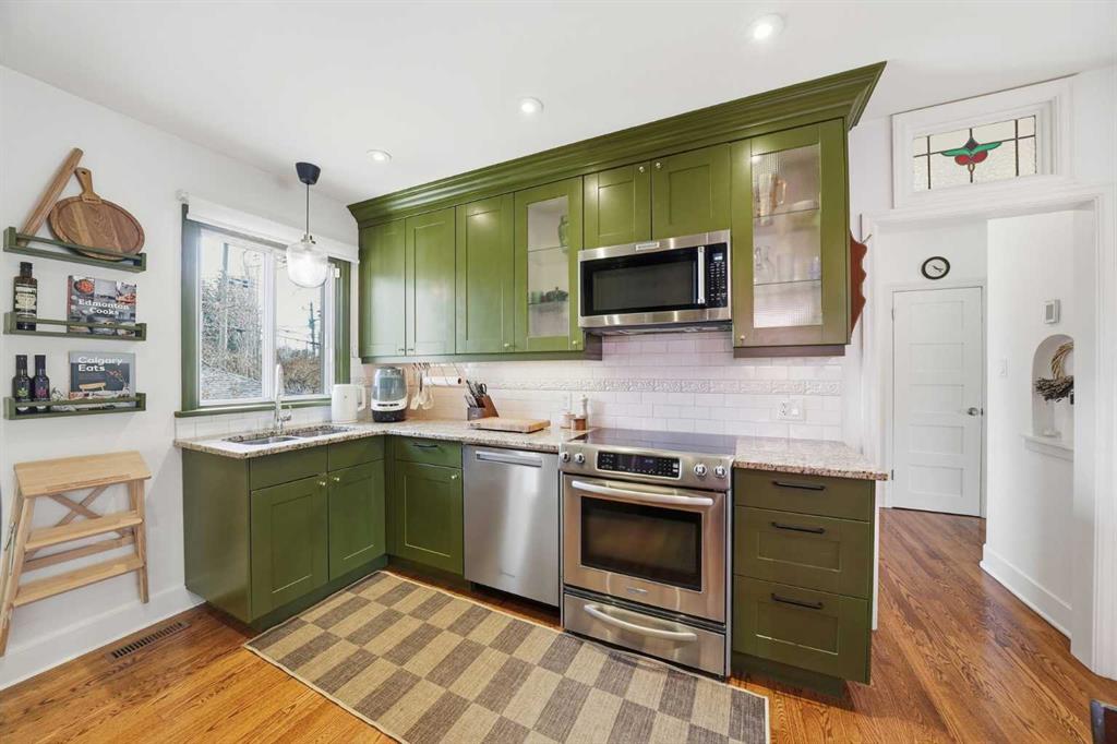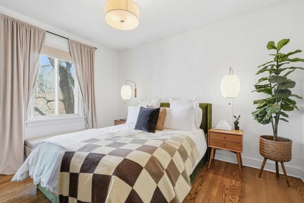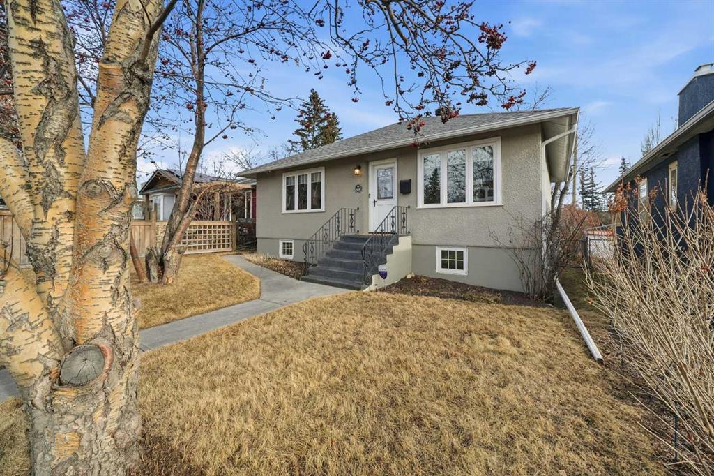 Modern luxury meets old world charm in this beautifully re-done 1949 character home. Situated on a LARGE 40’ x 119’ LOT, this UPPER MOUNT ROYAL BUNGALOW is perfectly located in the heart of inner-city Calgary. OWNER OCCUPIED and lovingly cherished, this home has been tastefully updated over the years. Many of the ORIGINAL CHARACTER FEATURES remain, making this a charming space full of history. The smartly laid out floor plan includes a total of 902 square feet above grade and a FULLY DEVELOPED BASEMENT, including 3 BEDROOMS AND 2 FULL BATHROOMS. Perfect for a professional couple or small family! Upon entering, you’ll find original oak hardwood flooring, professionally refinished in a dark wood tone, a light and bright living and dining area upgraded with colour drenched walls and modern lighting. The kitchen has been transformed to modern standards with beautiful shaker cabinetry, granite countertops, and a stainless steel appliance package including a new dishwasher. Proceed through classic arched doorways to the bathroom, updated with a marble countertop and refinished wood vanity, plus dual sinks. Completing the main floor are two generously sized bedrooms. The basement, completed in 2013 with permits, features a large recreation space – full of light from four windows. There is a third bedroom and a full bathroom – a great guest space. Heading outside into the landscaped yard, you’ll find a large lawn, perfect for the kids or pets to play. Completing the yard is the sturdy storage shed, single garage, plus a two car parking pad – plenty of off-street parking for visitors! Upgrades include: newer roof approximately 2018, furnace 2021, hot water tank 2021, A/C 2021, dryer 2025, Hunter Douglas blinds 2021, and interior paint. With a park and library right across the street, easy access into the heart of downtown via 14th street, and situated in the William Reid School catchment zone – this is an excellent purchase at only $699,900! Tired of builder basic homes? Own a piece of history in this adorable, craftsman-made, classic bungalow!