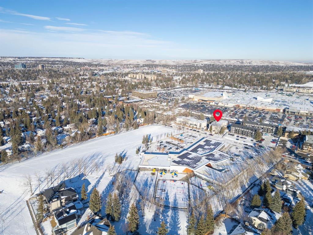 TOP FLOOR. SUN-FILLED. WALK EVERYWHERE. LOCATION LOCATION LOCATION!!! Market Mall is ACROSS the Street = groceries, shops, restaurants, services, coffee shops, theatres. 5 minute drive to U of C or walk in 25 minutes or 2 minute walk to bus stop = arrival at U of C in 10 minutes! Bow River Pathway is a block away – extensive, year-round paved and multi-use trails for walking, running and cycling! Rare opportunity to own in this quiet, well-kept building. NO sales have occurred here since 2024 – makes this a great opportunity to find the perfect place to live – and a solid stable community to live in. This BRIGHT – CORNER 1-bedroom, 1-bathroom unit sits on the TOP floor, meaning no one above you. Exceptional East-South-West natural light throughout the day. Enjoy a large private SOUTH facing balcony off the living room, unobstructed sunshine into both the open concept living/dining space and the bedroom. PLUS enjoy mountain views from your kitchen window! The layout offers generous in-suite storage (bikes, boxes, or use as pocket office area) and ample closet space. IN SUITE LAUNDRY. This unit is VACANT and move-in ready. LOW condo fees that include assigned PARKING, HEAT & WATER – keep ownership affordable. This is an exceptional opportunity for a first-time buyer, someone looking for a quiet haven in the city or an investor ( NO Short Term rentals under 28 days allowed. ) Have a PET?! Board approval necessary but no weight, breed, size restrictions. Own for less than many rental payments – while building equity in one of Calgary’s most connected communities! Quiet building. Top floor privacy. Sunshine all day. Location that works for real life. Faces Christine Meikle School – so many days/months of the year – you have no neighbours! Plus the road is blocked right in front of this unit (can’t drive straight thru on 50 St) – so LIMITED traffic noise below! Perfect QUIET space to study or relax. Varsity gives you inner-city access without inner-city chaos! Close to major roadways. Airport is 25 mins away and drive Downtown in 10 mins (without traffic of course!) Get out of the city quickly – Canmore is an hour away! Mature trees, strong schools, walkability and long-term value. Varisty is one of Calgary’s most popular communities. Some photos are virtually staged. Call today to view – or book a showing!
