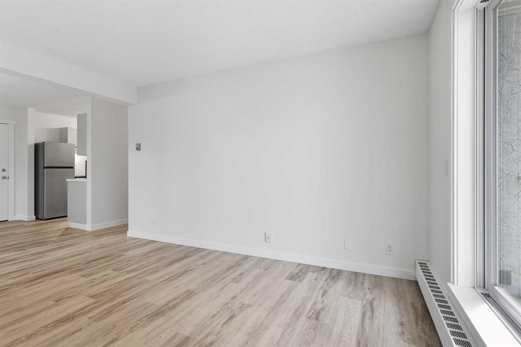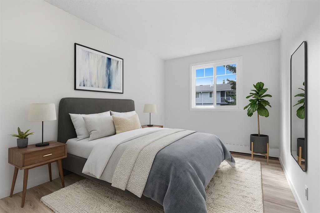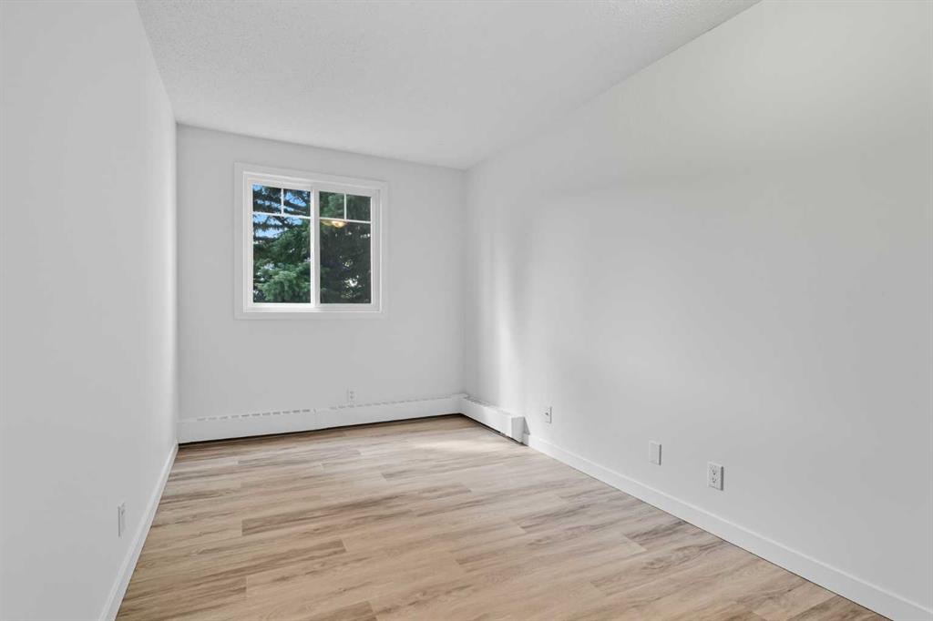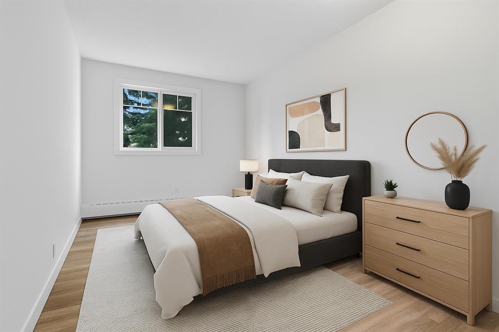 Step inside this beautifully updated corner unit condo and experience a home that balances style, function, and warmth. The open concept living and dining area sets the tone, with bright natural light pouring in through large windows and neutral tones that create a fresh, welcoming atmosphere. The kitchen is a true highlight, showcasing white cabinetry with elegant glass inserts that combine timeless style with everyday functionality. The bathroom has also been upgraded with a new vanity and a stylish tile surround, bringing a fresh, modern feel to this private retreat. The living room is spacious and inviting, perfect for relaxing or entertaining. The dining space sits under a contemporary chandelier, giving the area a polished, modern touch. This condo features two generously sized bedrooms, each designed with comfort in mind. Large windows fill the spaces with natural light, providing calming views of the treed courtyard. Whether you need restful retreats, guest accommodations, or a dedicated home office, these rooms offer the flexibility you need. Recent upgrades throughout include new flooring, lighting, and modern finishes, making this condo truly move-in ready. Prime location close to schools, shopping, dining & transit. Perfect for first-time buyers, downsizers, or investors. This is your chance to own a home that combines modern comfort with everyday convenience. Don’t wait, book your private showing today and see for yourself!