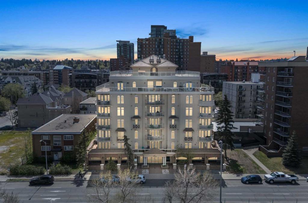 Step inside this stunning corner suite in the iconic Monaco building in Calgary’s trendy Beltline district, where timeless Mediterranean-inspired architecture meets modern urban living. Designed with meticulous attention to detail, this residence features arched walls, sculpted ceilings, and grand crown moulding, creating a sense of sophistication and style throughout. Expansive arched windows invite natural light to pour into the open living space, highlighting the impressive 9 ft ceilings and enhancing the feeling of spaciousness. The architectural allure continues with French doors leading to a massive private balcony that spans the entire corner of the unit – perfect for outdoor entertaining or enjoying city views. Inside, the kitchen exudes elegance with maple cabinetry, centre island, stainless steel appliances, seamlessly connecting to the main living area, complete with a gas fireplace with a modern niche for storage. The primary suite is a serene retreat, featuring a luxurious Jacuzzi tub and custom finishes, while the second bedroom offers ample space and versatility. Building amenities include a rooftop sun deck, bike room storage, and visitor parking, all within the security of solid concrete construction. Located in the heart of the Beltline district, you’re steps away from the Bow River pathways, Sunalta and Kirby LRT stations, a few blocks to Bow River pathways17th Avenue’s eclectic shops and cafes, and the downtown core – all wrapped in architectural charm and sophisticated design.