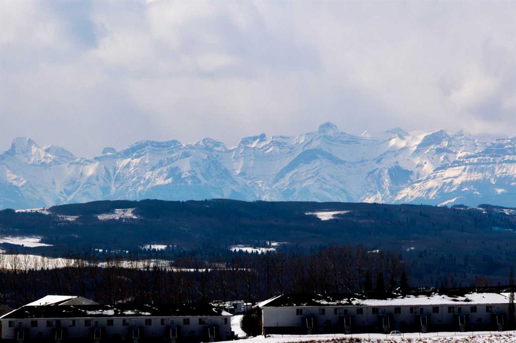 HOME SWEET HOME! Calling all first-time home buyers and investor’s, welcome to this stunning, FRESHLY UPDATED TOP FLOOR CONDO with 2 PARKING STALLS in the sought-after community of Sunset Ridge in Cochrane! This chic unit offers 2 bedrooms, 1 bathroom, 858 exquisite SQFT that has been freshly updated with FRESH PAINT, NEW CARPET and LUXURY VINYL PLANK FLOORING (2026). Walking in to the unit you are greeted by the contemporary kitchen complete with stainless steel appliances, granite countertops, granite island with an eating bar, tiled backsplash, warm maple cabinetry and stylish light fixtures. Next to the kitchen you will find the bright formal dining room, spacious sun-drenched living room with access to the massive deck to enjoy your breathtaking views of the mountains. Completing the unit are an office nook, a two great-sized bedrooms including the magnificent primary bedroom with a spacious walk-in closet, lavish 4 piece bathroom with a relaxing soaker tub perfect to enjoy after a long day, separate, private shower and in-suite laundy. This unit includes a titled indoor parking stall, outdoor parking stall, assigned storage locker and exclusive access to the amenities featured in the popular, pet friendly ‘Alora at Sunset Ridge’ building include a fitness facility, guest suites, visitor parking and more. Close to all major amenities including shopping, restaurants, beautiful dog walking trails, schools (St. Timothy Catholic School and Rancheview School), quick drive to Calgary and easy access to escape to the mountains. This unit is a MUST VIEW, book your private viewing today! Please note that the pet rules allow for one pet under 18 pounds. Guest suite is $50/night + $35 janitorial fee if owner wishes to book for visiting guests.