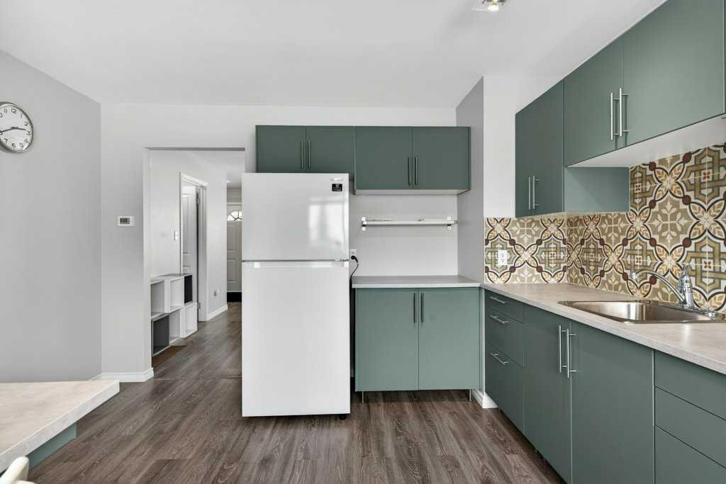 Step inside to discover a bright, open-concept layout with updated flooring throughout and a fully renovated kitchen complete with brand-new appliances, including a fridge and range. The kitchen seamlessly connects to a versatile flex space—ideal for a dining area, home office, or additional living space to suit your needs. The spacious great room opens onto greenspace, perfect for relaxing or entertaining. Upstairs, you’ll find a generous primary bedroom, two additional well-sized bedrooms, and a fully updated bathroom. Primary bedroom offers a large East facing patio. The unfinished basement provides ample storage, laundry space, and future development potential to add even more living area. A unique bonus in the basement is the soundproofed room—an ideal setup for working from home, gaming, or creative musical pursuits. Enjoy the quiet setting with a concrete patio off the rear entrance and beautifully maintained green space throughout the complex. An oversized assigned parking stall plus additional street parking adds to the convenience. Ideally located close to schools, parks, shopping, and transit, with quick access to 16th Avenue, Deerfoot Trail, and downtown Calgary—this is an excellent opportunity to own in a well-connected and established area. Some photos have been digitally staged.