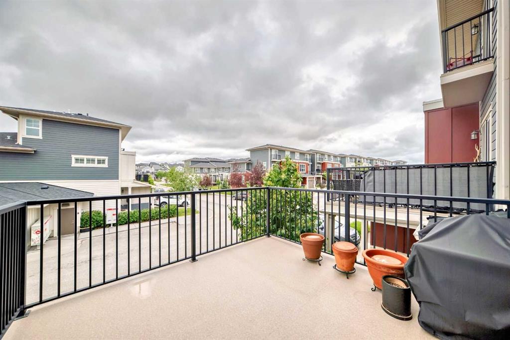 The DEAL in Nolan Hill …. Stylish and Modern Townhouse Condo in the Heart of Nolan Hill. Welcome to this exceptional two-bedroom, 2.5-bathroom townhouse condo nestled in the quiet NW community of Nolan Hill. This beautifully designed home offers the perfect blend of contemporary comfort and everyday convenience, making it ideal for professionals, small families, or savvy investors. Enter this home from your attached garage or the front entry and make your way up to the bright and open main floor featuring durable vinyl plank flooring and soaring ceilings that enhance the sense of space and light. The thoughtfully designed kitchen is a modern chef’s dream, complete with quartz countertops, stainless steel appliances, and a corner pantry that provides ample storage. Whether you’re cooking a casual meal or entertaining guests, this kitchen is built to impress. The living and dining areas flow seamlessly onto the spacious south-facing balcony (10.5′ x 10.5′), offering a sunny spot for morning coffee or evening relaxation. & DOESN’T STARE INTO YOUR NEIGHBOURS BALCONY. A convenient two-piece powder room rounds out the main level. Upstairs, both bedrooms are generously sized with plush carpet and each features a private four-piece ensuite bathroom and walk-in closet—an ideal layout for roommates, guests, or growing families. With dual primary suites, privacy and comfort are never compromised. The single-car finished garage provides secure parking and additional storage, while the lower level utility room is equipped with a high-efficiency furnace and hot water tank, keeping your home comfortable and energy efficient year-round.