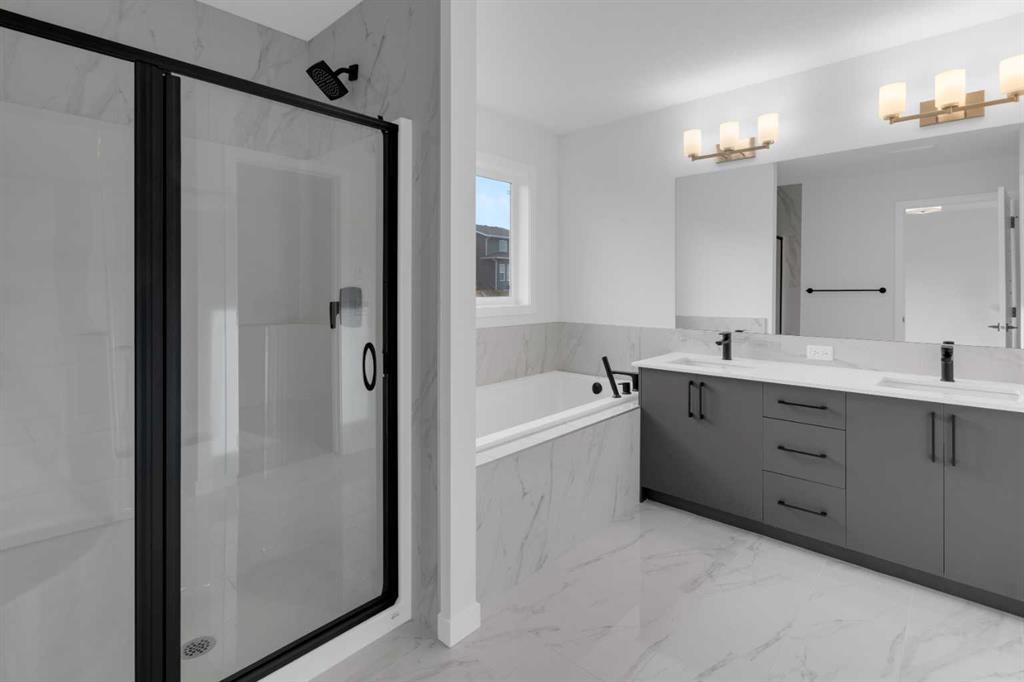 Nestled in the vibrant Northeast community of Livingston…enjoy the benefits of living in an established neighborhood that brings a plethora of amenities right to your doorstep, along with swift access to major highways. Welcome to the COLLINGWOOD – a BRAND-NEW home built by Excel homes. This amazing family home has it all – it’s LOADED WITH UPGRADES – has a SOUTH EAST FACING BACKYARD and a SEPARATE ENTRANCE TO FULLY DEVELOPED LEGAL BASEMENT SUITE!!! This home offers 2230 sf & is delivered in an open plan, designed for families & entertaining. This impressive home offers FIVE BEDROOMS…FOUR of the bedrooms on the upper level with an ADDITIONAL bedroom and FULL BATH on the main floor. The kitchen is a show stopper with huge waterfall island, built in SS appliances, gas cooktop & loads of cabinets and drawers for storage. In addition, the main floor boasts a pantry with summer / spice kitchen that offers storage cabinets, stove/hood fan and sink! You’ll notice the back of the house is almost entirely windows, flooding this home w/natural daylight. Exit to your SOUTH EAST FACING backyard thru the oversized patio doors. The family room & dining area are connected & offer huge family / entertaining potential. 9’ ceilings & gorgeous luxury vinyl plank flooring make this space airy & bright. Upstairs you’ll find FOUR spacious bedrooms! The primary suite is separated from the 3 others by a huge bonus room. The primary suite also features an amazing spa like ensuite w/dual sinks, beautiful tile skirted soaker tub & separate shower. Your laundry room (with folding counter) & family bathroom complete this level. THE BASEMENT is fully developed & has a PRIVATE / SEPARATE side entry that leads to your 2-bedroom LEGAL suite, perfect for rental income, extended family or a live-in nanny! This level is built to upstairs standards & features TWO BEDROOMS, a FULL KITCHEN (w/SS appliances), FAMILY ROOM, laundry & 4 PCE BATH. All utilities are separate from the main floor – 2 furnaces & hot water tanks & laundry. Whether you’re a growing family, savvy investor, or multi-generational household, this is the home you’ve been waiting for. With over 35 years of experience, over 15,000 homes built & 75 awards for design & industry excellence, Excel Homes is a wise choice!