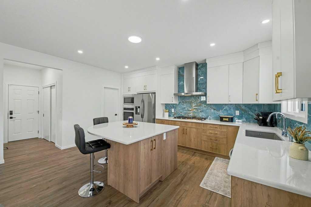 This spacious residence offers a total of 5 bedrooms and 3 full bathrooms, making it ideal for growing families, multi-generational living, or future rental potential. One full bedroom and full bathroom on the main level provide excellent convenience for guests or seniors. The heart of the home features a modern open-concept layout with built-in appliances, elegant finishes, and an impressive huge walk-in pantry perfect for everyday living and entertaining. With a generous 2,764 sq ft of developed living space, this home feels bright and airy thanks to oversized windows throughout the entire house, including extra-large basement windows that flood the lower level with natural light. The basement also includes a separate side entrance, giving buyers the opportunity to build a future basement suite (subject to city approval), adding incredible long-term value. The double attached garage comfortably fits two vehicles, with space to park two additional cars on the driveway, plus the added benefit of a rear back lane, offering flexibility and convenience. The massive pie-shaped lot provides plenty of outdoor space for future landscaping, a deck, or a backyard oasis. Location is another major highlight—amenities, shopping, and daily conveniences are all nearby, and a new school currently under construction is just a one-minute walk away, making this an excellent choice for families planning ahead.