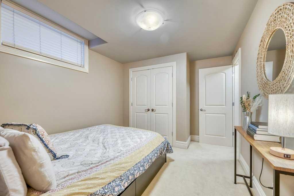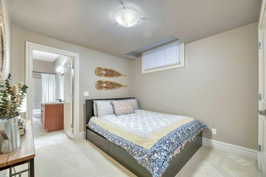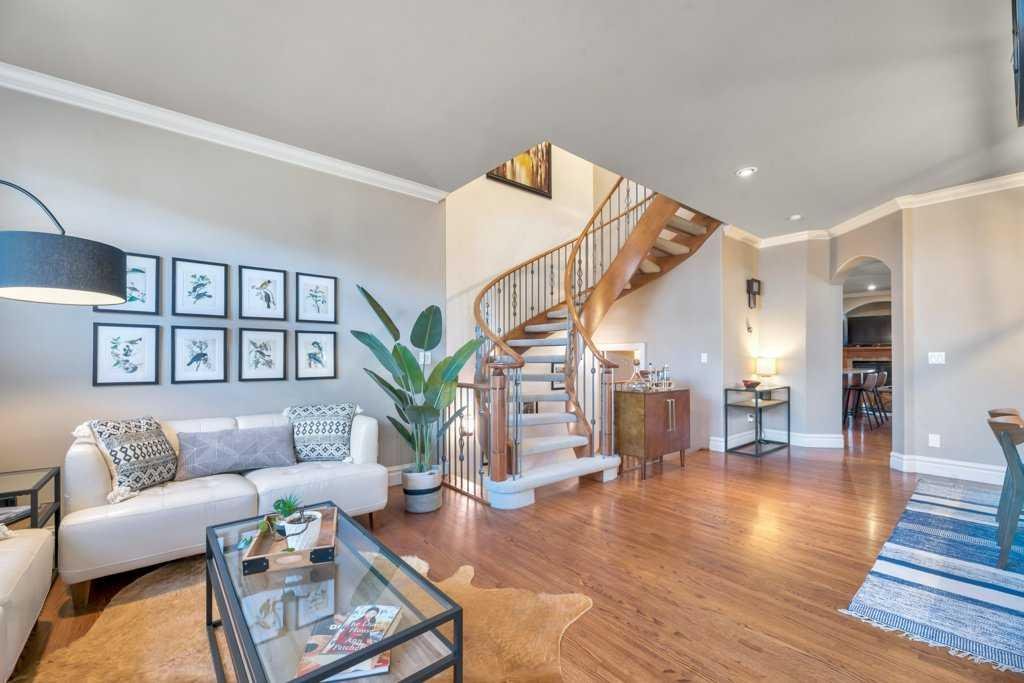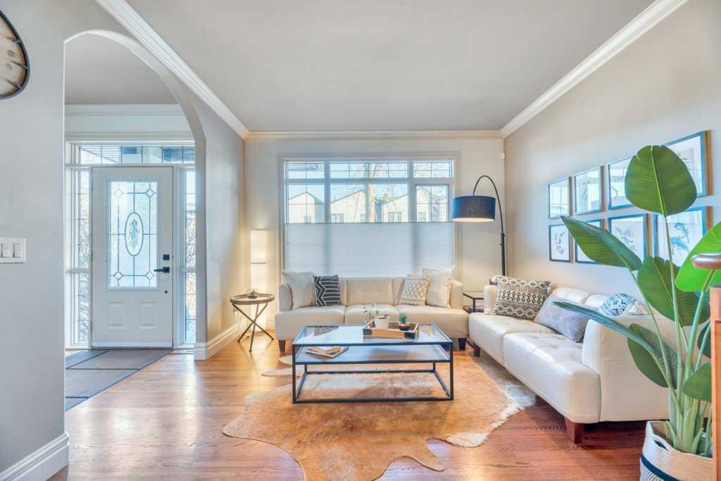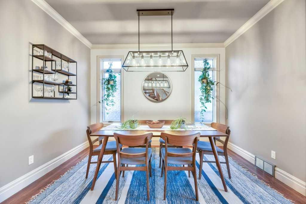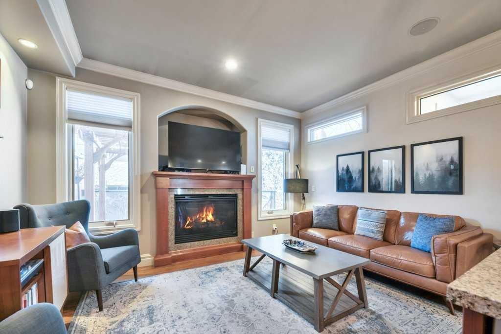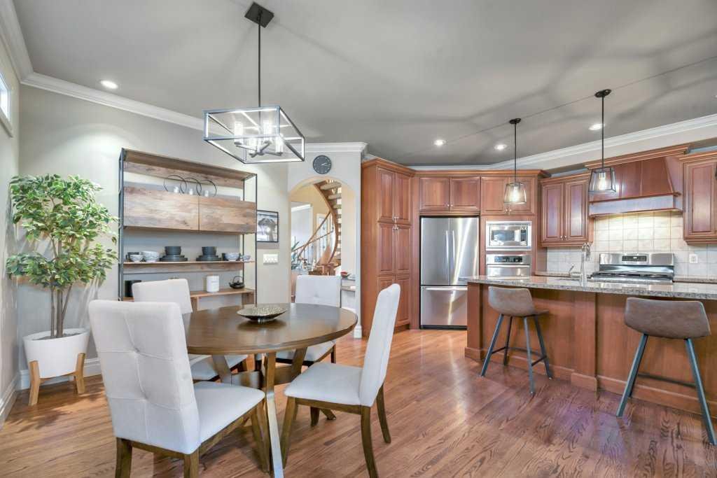 This beautifully crafted custom home showcases timeless architecture, refined finishes, and a highly functional layout, ideally situated on a quiet street with convenient access to schools, parks, and transit. Designed for both elegant entertaining and comfortable everyday living, this residence offers an exceptional balance of style and substance. The inviting foyer opens to formal living and dining areas highlighted by gleaming hardwood floors and soaring 9-foot ceilings, setting a sophisticated tone throughout the open-concept main level. The chef-inspired kitchen is a standout, featuring granite countertops, an oversized central island, stainless steel appliances including a new gas range (2023), wall oven, and tiled backsplash. The kitchen flows seamlessly into the dining nook and family room with fireplace, creating an ideal space for hosting or relaxed evenings at home. A striking curved staircase leads to the vaulted upper level, where the king-sized primary retreat offers a true executive escape. The spa-inspired ensuite features double sinks with granite counters, a soaker tub, a large separate tiled shower, and a three-sided fireplace shared with the bedroom. A generous walk-in closet completes this private sanctuary. Two additional well-appointed bedrooms and a full 4-piece bathroom complete the upper floor. The fully developed basement extends the living space with a bright family and recreation room, an additional spacious bedroom, and a full bathroom—ideal for guests, a home office, or extended living. A newer mudroom addition (2022) leads to a professionally designed deck with pergola, also completed in 2022, offering an elegant outdoor setting for entertaining and relaxation. The landscaped yard, paved lane, and double detached garage provide both functionality and convenience. Meticulously maintained with extensive upgrades, this home reflects true pride of ownership, including new shingles, downspouts, and gutter guards (June 2025), a new electrical panel and wiring (Nov 2025), updated main-floor lighting (Apr 2021), and new upstairs and basement bathroom fixtures (July 2024). A complete list of improvements is available in the Supplements. An exceptional opportunity for the discerning buyer seeking quality, comfort, and quiet sophistication—book your private showing today.