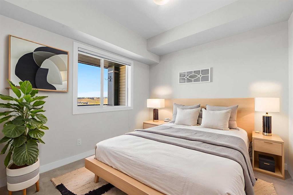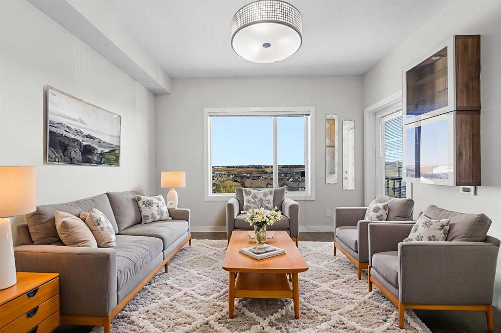 Welcome to this beautifully kept top-floor 2-bedroom, 2-bath condo in the vibrant NW community of Sage Hill. Thoughtfully designed and filled with natural light, this home combines comfort, function, and style in every detail. The open-concept layout features 9-foot ceilings, elegant vinyl flooring throughout the main living area, and soft carpet in the bedrooms for added comfort. The modern kitchen is a standout with sleek flat-panel cabinetry, granite countertops, stainless steel appliances, and a large island with breakfast bar seating—perfect for hosting friends or relaxing with family. The inviting living area opens onto a private balcony, an ideal spot to unwind and enjoy the view. The primary suite includes a walk-through closet, an electric fireplace, and a 4-piece ensuite, while the second bedroom and full bath offer great flexibility for guests or roommates. With in-suite laundry, a titled underground parking stall, and a quiet, pet-friendly building close to scenic paths, shopping, and restaurants, this home delivers both convenience and quality. Book your private showing today and see why life in Sage Hill feels so easy to love.