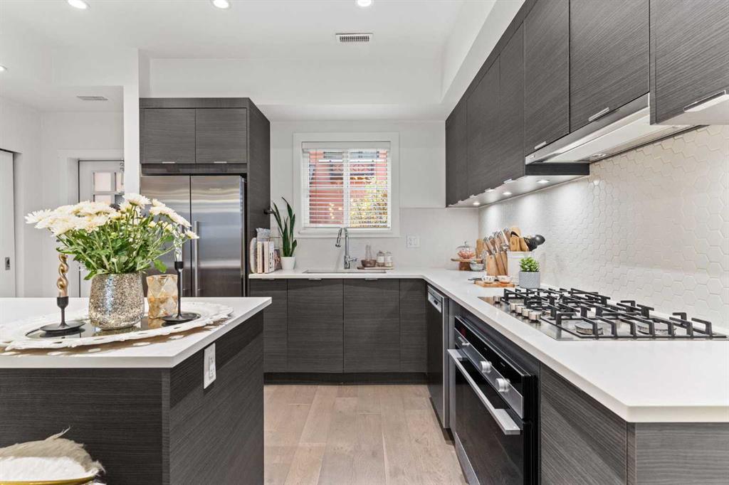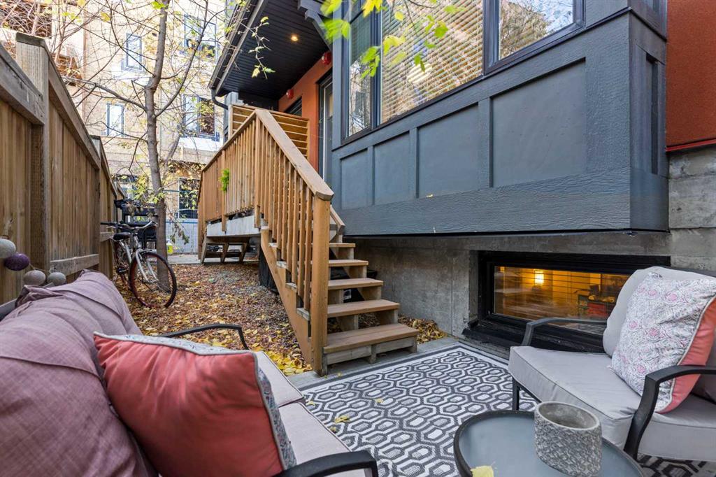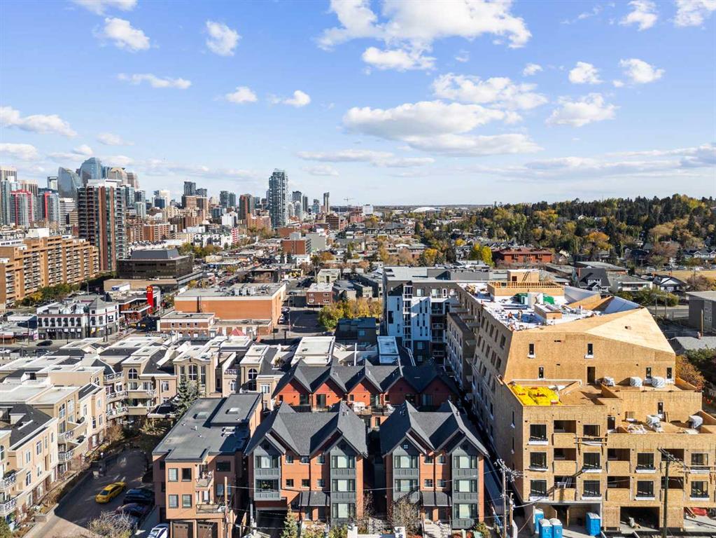 With OVER 1,443 SQ.FT of developed living space, this stylish 3 BEDROOM inner city townhome offers urban convenience just steps from 17th Avenue’s shops and restaurants. Quietly tucked in a boutique 9-unit complex, this courtyard unit is STUNNING and features a BRIGHT, functional layout. The top floor is dedicated to a SPACIOUS PRIMARY retreat with VAULTED CEILINGS, a large walk-in closet, spa-like ensuite with HEATED FLOORS, soaker tub, & a glass shower. You’ll love the views of downtown Calgary along with the added added bonus of a private rooftop balcony overlooking the terrace below. The second level includes two generous bedrooms, a full bath, and laundry. The open-concept main floor features a modern kitchen with QUARTZ countertops, stainless steel appliances including a gas range, plenty of cabinet space, and a dedicated dining area that flows into the living room where you can cozy up to the gas fireplace. Enjoy your private courtyard patio with gas hookup — perfect for summer BBQs. A large flex room on the lower level offers additional storage or workout space. The home includes a secure, heated underground parking stall with direct access from your unit. Move-in ready and ideally located, this home combines modern design with the best of downtown living!