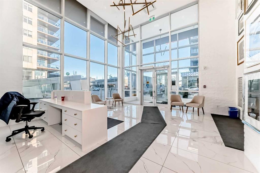 Welcome to Gateway by TRUMAN, ideally located in the vibrant, master-planned West District. This concrete-constructed residence offers modern luxury, thoughtful design, and exceptional urban convenience. This two-bedroom, two-bathroom home with titled underground parking features chevron wide-plank flooring, designer lighting, and flat-painted ceilings for a timeless, upscale feel. Floor-to-ceiling windows flood the space with natural light and capture mountain views, while central air conditioning ensures year-round comfort. The chef-inspired kitchen blends style and function with matte custom cabinetry, brushed-gold accents, quartz countertops and backsplash, under-cabinet lighting, and a generous eating bar. Premium appliances include a gas cooktop, wall oven, 36” Fisher & Paykel integrated refrigerator, paneled dishwasher, and statement hood fan. The open living and dining areas extend to a private terrace, ideal for outdoor lounging and entertaining. The primary suite features a walk-in closet and spa-inspired ensuite with quartz counters, mosaic tile, and a glass-enclosed shower. The second bedroom offers flexibility as a guest room or home office with access to a stylish four-piece bath. Additional highlights include in-suite laundry, ample storage, and secure underground parking. Residents enjoy premium amenities such as a rooftop patio, owner’s lounge, concierge, bike storage, EV charging, and visitor parking.