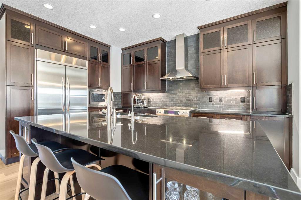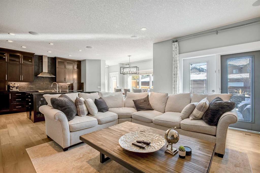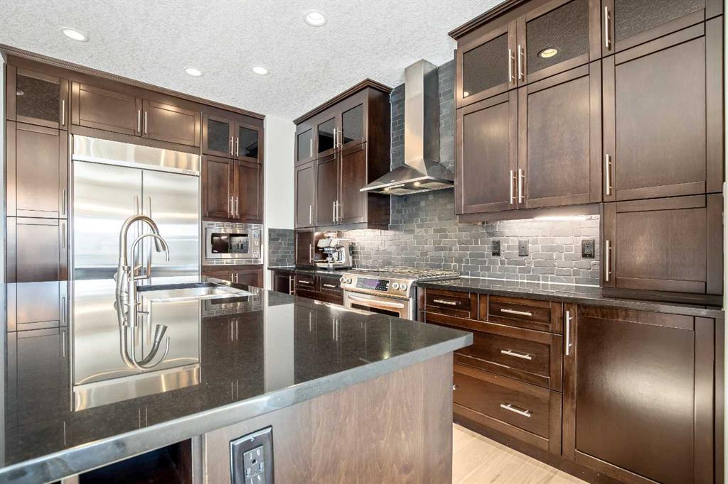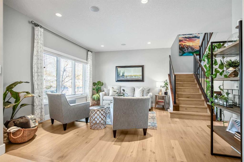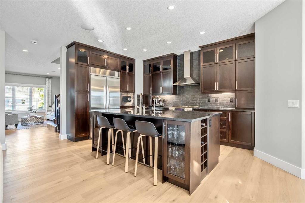 OPEN HOUSE Saturday Mar 7th 2pm to 4:30pm & Sunday Mar 8th Noon to 2pm 3040 – 28 St SW Impressive four bedroom, three and a half bath home on a quiet tree lined street in the vibrant SW inner-city community of Killarney! It boasts over 3300 sqft of developed living space. This property is Not the Typical narrow 25 ft wide infill! Enjoy the oversized 34 ft wide x 125 ft deep lot that gives you the added volume of space throughout the entire home. High quality finishings and craftsmanship. Gorgeous new engineered hardwood throughout all three levels. Bright & beautiful, lots of large windows, tons of natural light. Great function, fantastic layout and design. Proper foyer entry with formal living area. Frosted French doors to the office, giving you privacy but allowing light in. Chef’s dream kitchen, with lots of mocha cabinetry built to the 9 ft ceiling, black granite countertops, brick blacksplash and stainless steel appliances including a full fridge, full freezer & gas range. Spacious open floorplan of the great room with the kitchen being open to the family room and the dining area. A wall of glass with big windows and patio doors across the entire back of the home brings the outdoors in. Large family room features a stone gas fireplace with a garden door to the huge 19’2” x 33’6” wide composite deck with glass railings giving you added outdoor living space. Mudroom exit to the fully professionally landscaped backyard flagstone patio and underground sprinkler system with garden lighting. Beautiful staircase of black iron rails to the upper floor. The primary suite is your sanctuary with vaulted ceilings, space for a seating area and large walk-in closet with built-in cabinetry. Primary ensuite has dual sinks, black granite countertops, in-floor heat, deep soaker tub and stand alone shower. Two other good size bedrooms fit queen beds. Main upper floor bath has dual sinks and a cheater ensuite door to one of the bedrooms. Convenient upper floor laundry. The lower level has high ceilings and more of the beautiful engineered hardwood floors. A large rec room area has a wet bar, another full bathroom and an awesome Media Room that includes the projector, screen & speakers. The large fourth bedroom has a closet with built-in custom shelving and drawers. Furnace 2023. Central Air Conditioning. Roof 2025. Kinetico Water Filtration System. Low maintenance and hardy acrylic stucco exterior. Plus never have to put up Christmas lights again with Gemstone Lighting on the roof line. Heated double garage (21’4” x 20’11”). Located in the sought after area of Killarney, one block from the community centre and the community gardens, playground & skating rink. Walk to schools, parks, playgrounds, Killarney Aquatic Centre and more. Close to tons of great restaurants and amenities of Marda Loop and on 17th Ave. Close to MRU. 10 minute drive to downtown. Simply a fabulous property in a great location! View the 3D Tour (Purple house symbol) Welcome home!